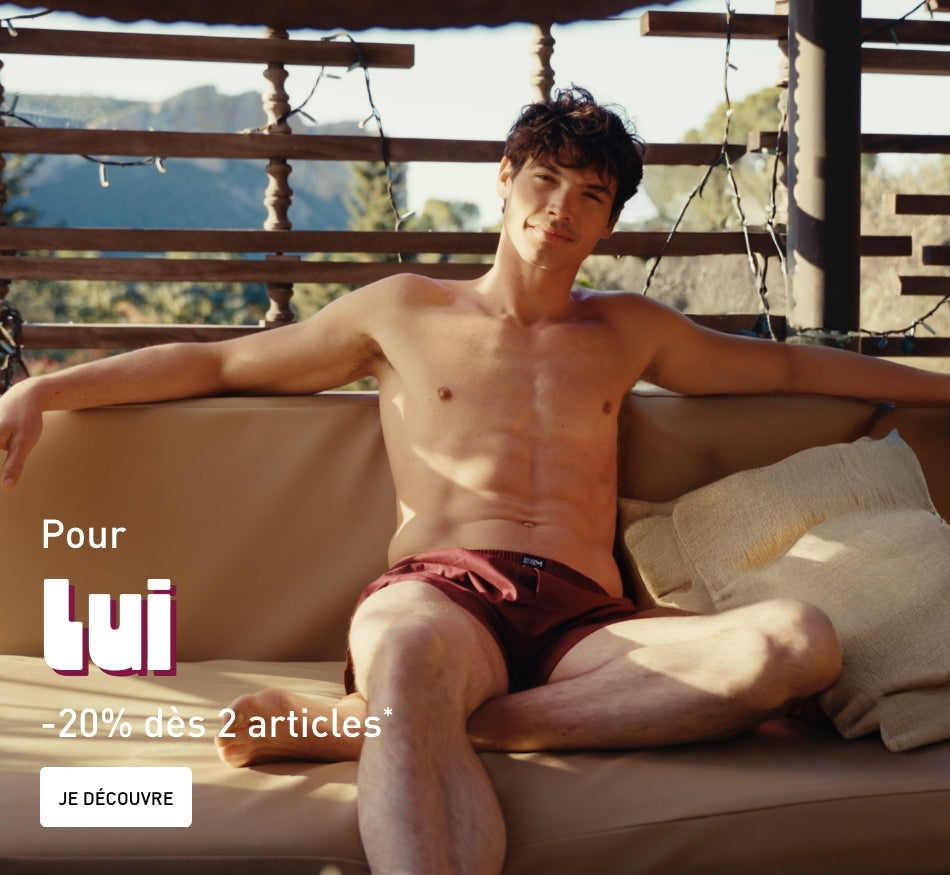 Bienvenue sur la boutique en ligne de lingerie DIM. Découvrez sur notre site officiel des offres promotionnelles exclusives, nos nouveautés en avant-première, ainsi que nos anciennes collections à prix réduits tout au long de l’année. Cumulez également des points à chaque achat grâce à notre programme de fidélité DIM Family, dont les avantages sont cumulables avec toutes les offres du site. Depuis 60 ans, DIM vous accompagne au quotidien avec style et confort. D’abord avec ses collants iconiques et ses dessous féminins, puis aujourd’hui aussi bien dans la salle de sport que sur la plage. DIM s’est également agrandie à toute la famille avec une collection homme puis enfants qui ne cesse de conquérir un nombre toujours plus grand de fidèles.