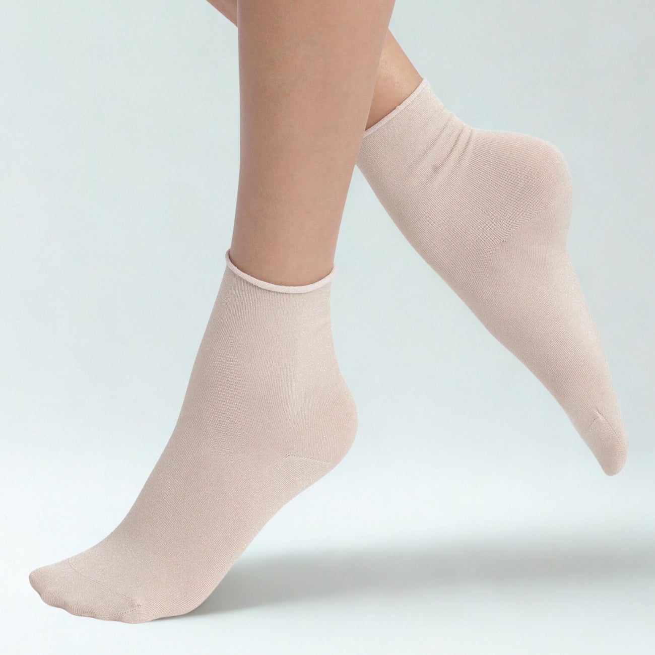 Warme, zachte materialen omsluiten het lichaam met zachtheid: lichte kasjmier- en katoenen breisels, tweede-huid panty's met trompe-l’œil-effect, fijne glinsterende sokken…
