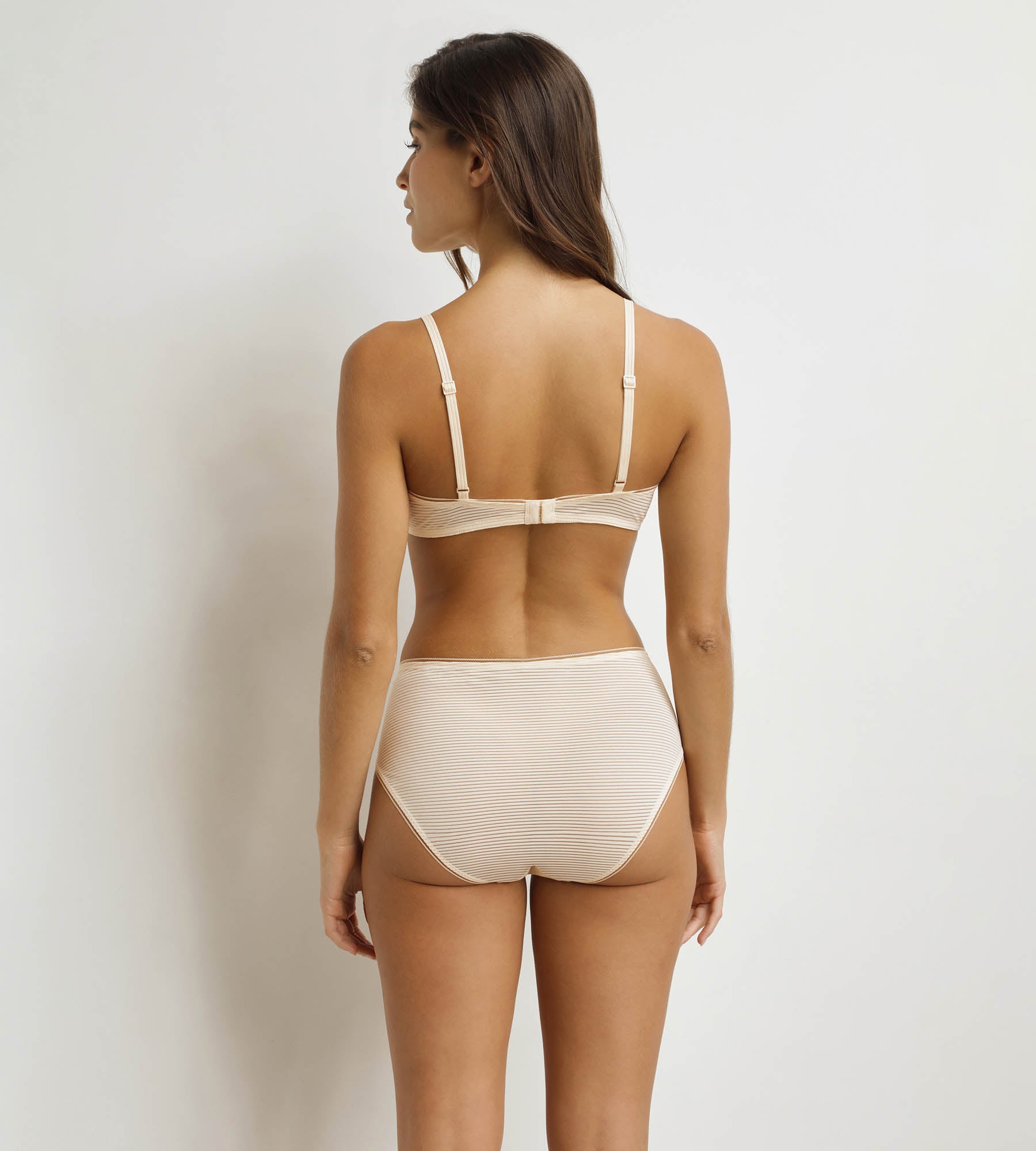 Minimalistisch en verfijnd, bedek de Beige Macadamia Dim x Inès de La Fressange beugelloze triangelbeha.