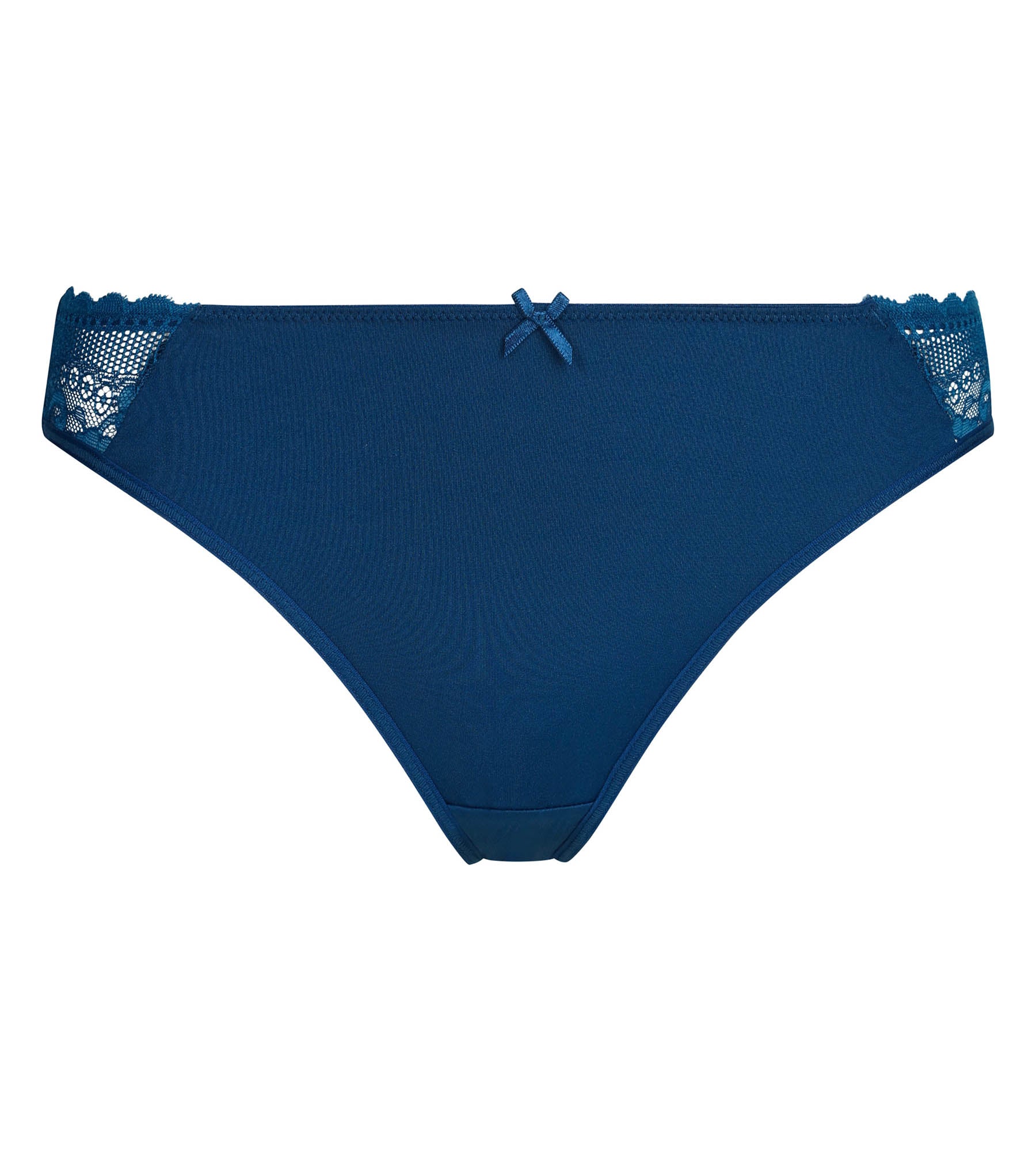 Kruip in de zachtheid van de Dim Féminine damesslip in diepblauwe microvezel en kant, een essential met discrete charme.