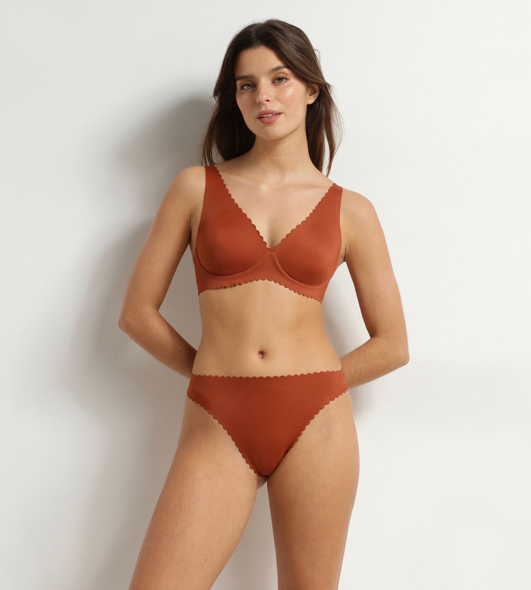 Deze Body Touch damesstring is comfortabel, vrouwelijk en vreselijk discreet en volgt elke beweging met souplesse. De ultralichte microvezelstof smelt letterlijk op de huid, terwijl de warme kleur kaneelbruin alle huidtinten accentueert. Onder een aangesloten jurk of vloeiend pak zorgt de Dim Body Touch g-string voor een onberispelijke lijn.