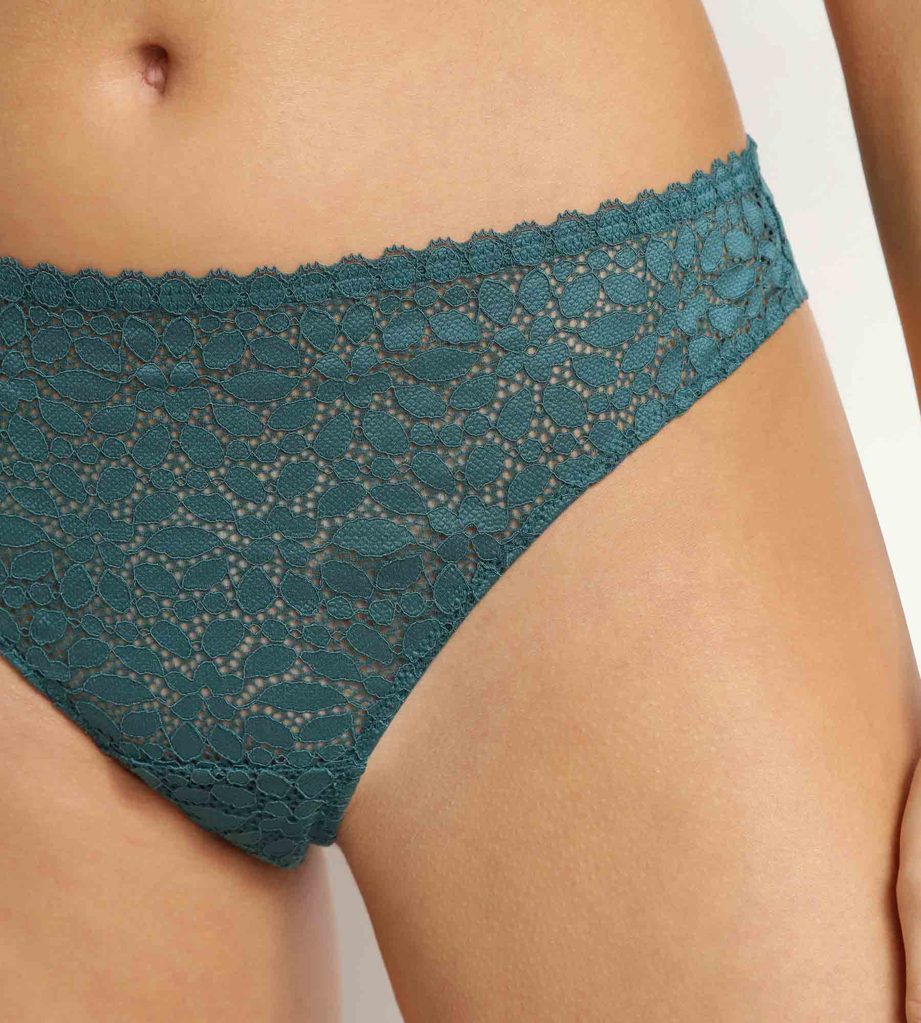 Een tikje retro, maar vreselijk vrouwelijk: de smaragdgroene Daily Dentelle tanga brengt een vleugje kleur en luchtigheid in je dagelijkse lingerie.