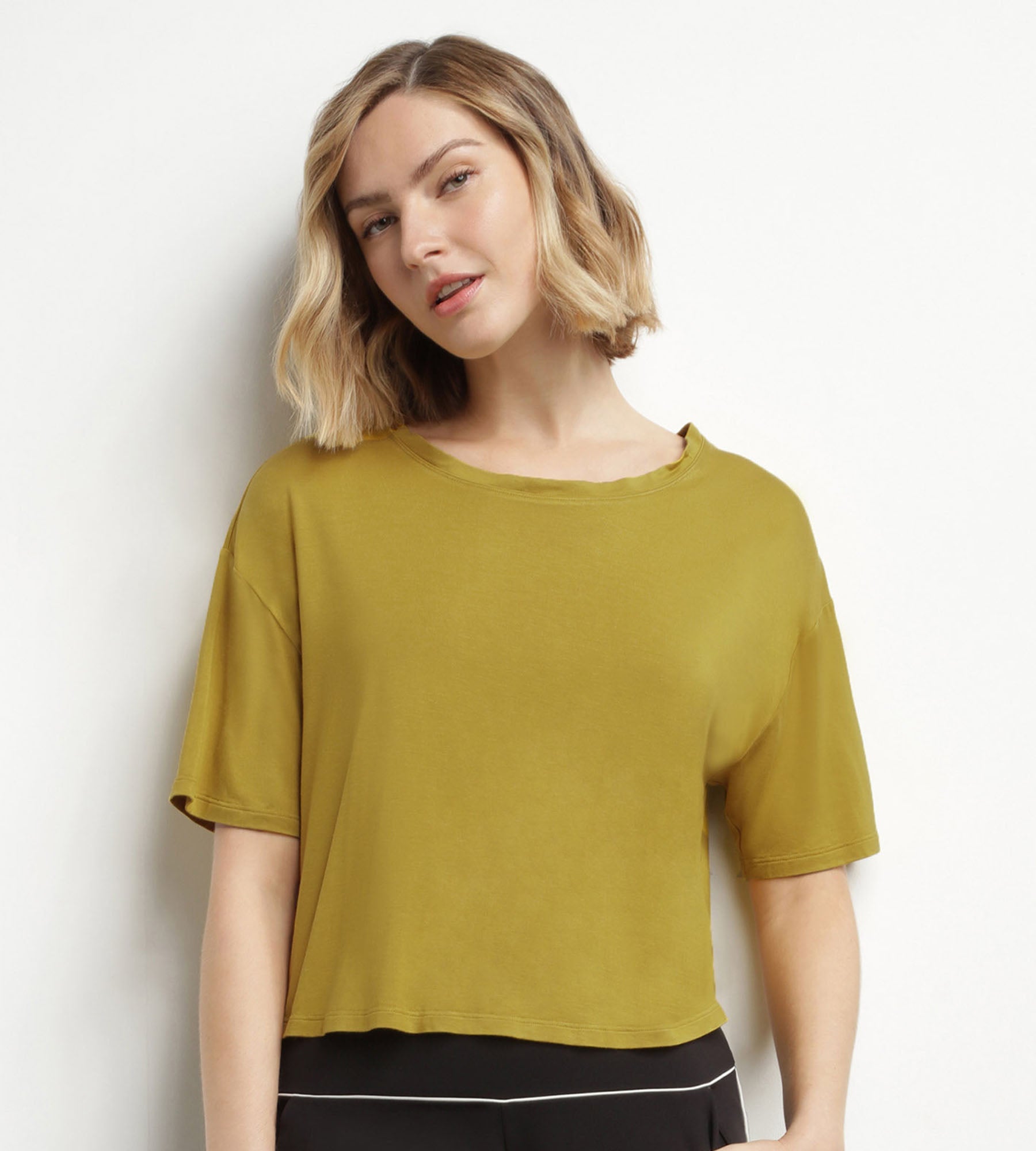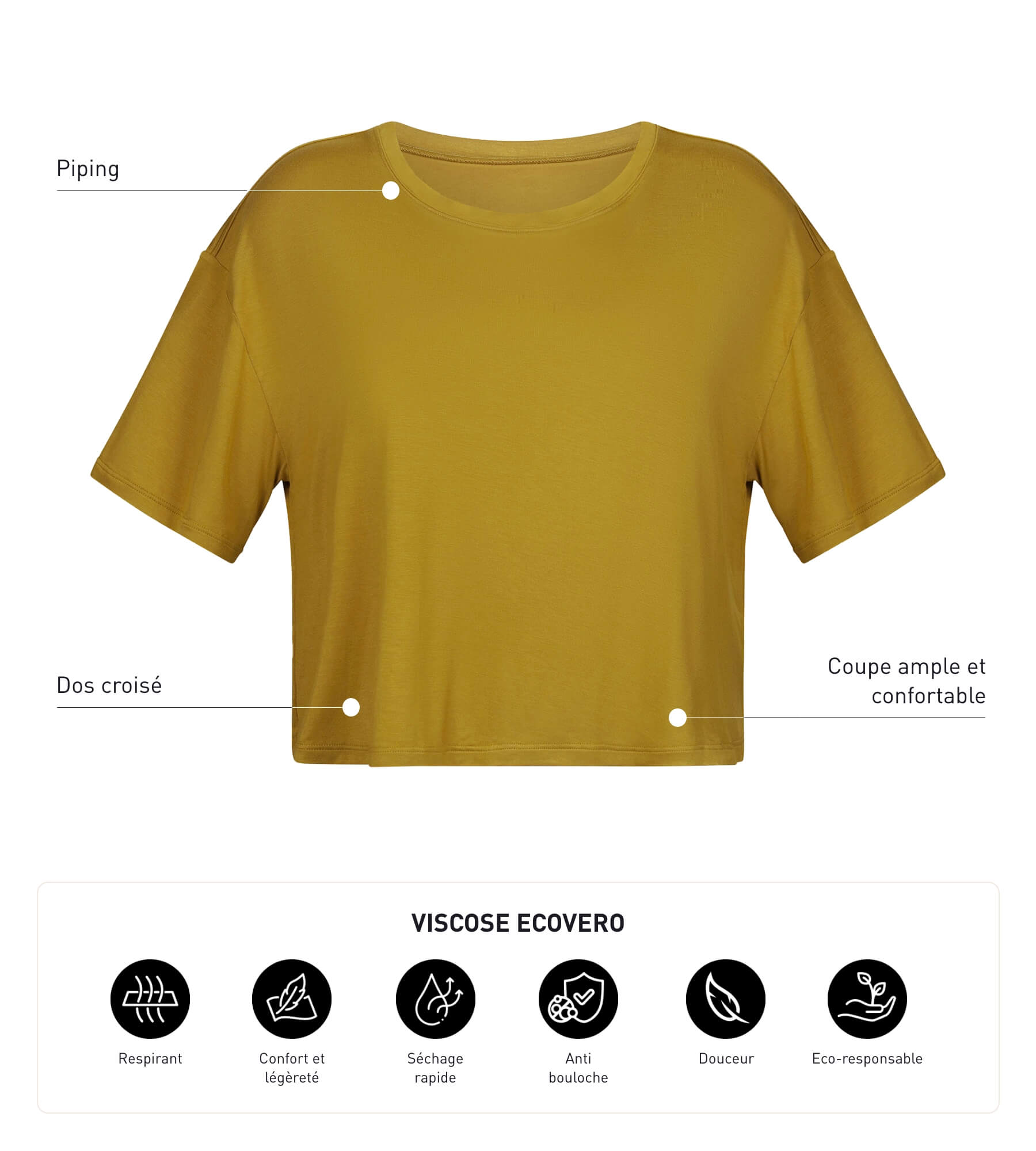 Finish je sportlook met pit en comfort dankzij de Olive DIM Move viscose open tee!