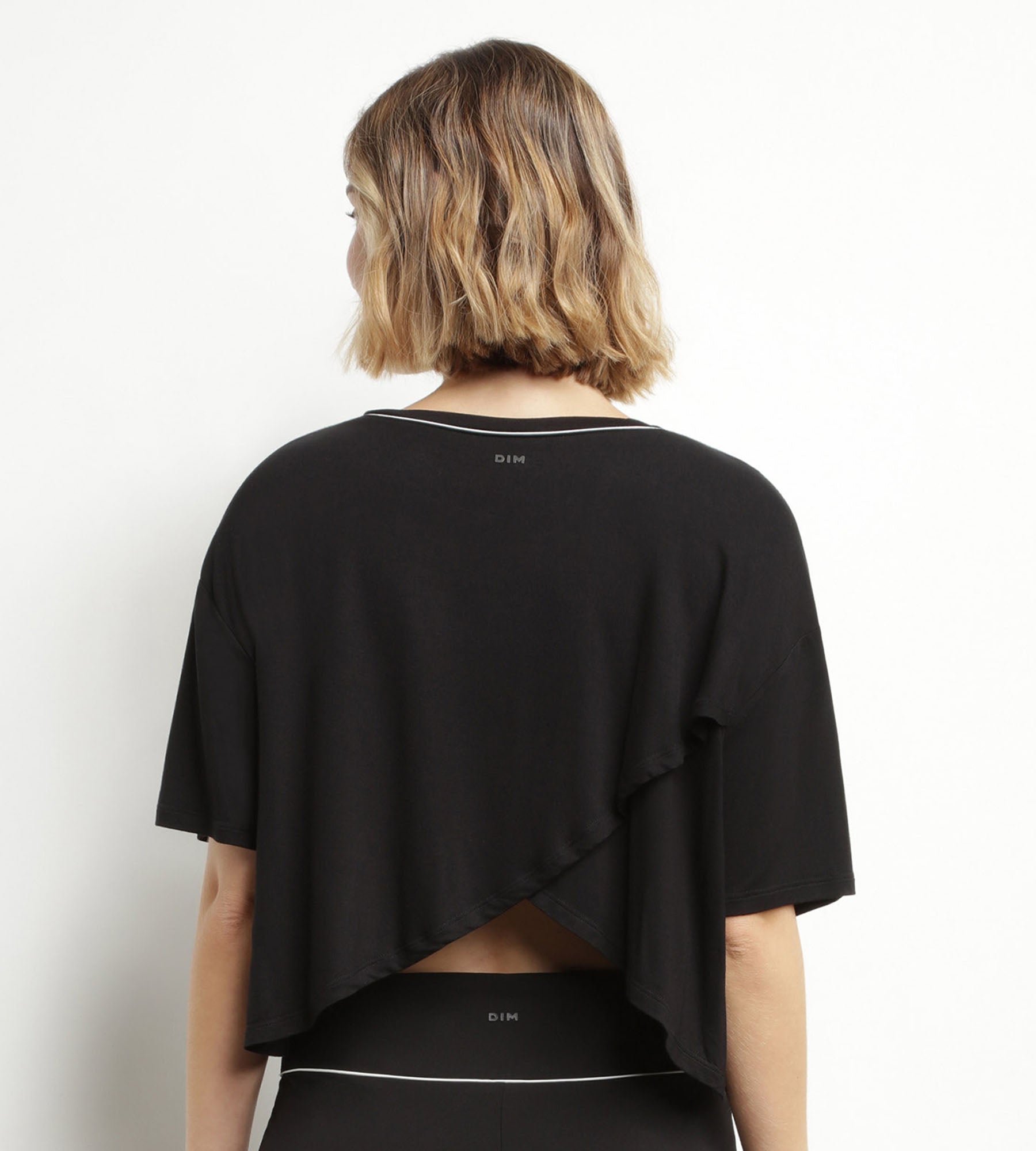 Dames sport T-shirt in zwart viscose met open rug DIM Move
