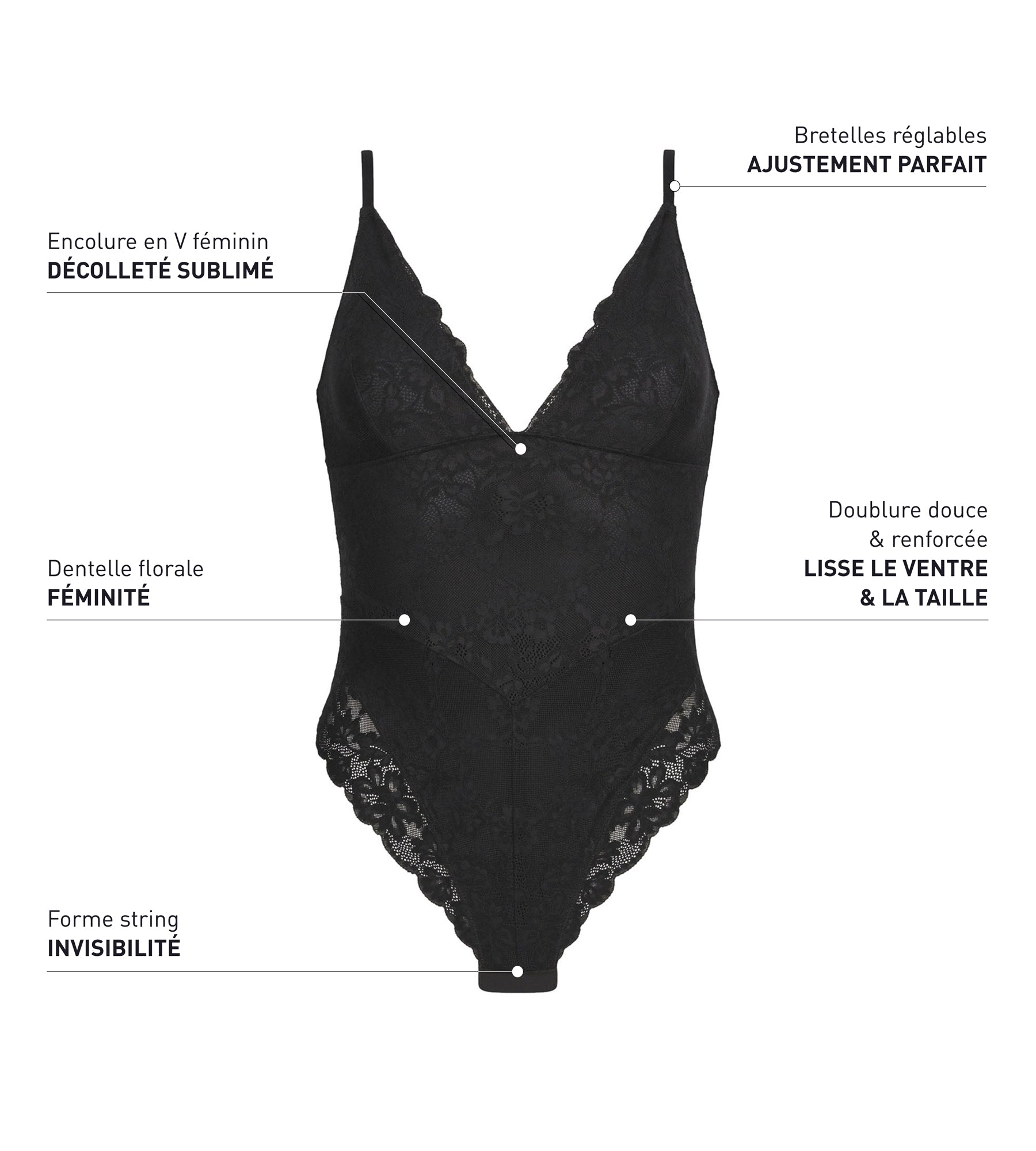 Sublimeer je figuur met de DIM SILHOUETTE DENTELLE bodysuit, een delicaat en ultravrouwelijk lingeriestuk.