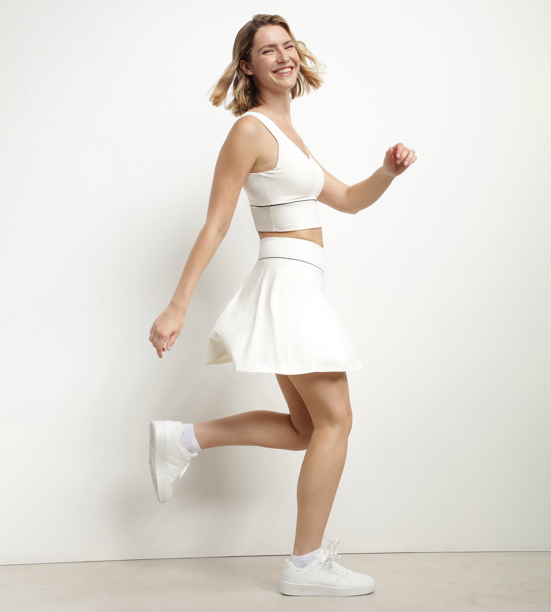 De DIM Move damesshorts zijn ontworpen om elke dag te dragen, in de vrije tijd of tijdens het sporten, en zijn versierd met een vloeiende petticoat, voor een elegantere look! Je zult dol zijn op de geïntegreerde shorty, gemaakt van lichtgewicht microvezel: je damessportkleding past perfect en droogt in een oogwenk. Dankzij de naadloze afwerking en de split aan de zijkanten beperkt de DIM Move skort je mobiliteit niet. We zijn dol op de zijzak om je telefoon in op te bergen en de zeer moderne contrasterende biezen.