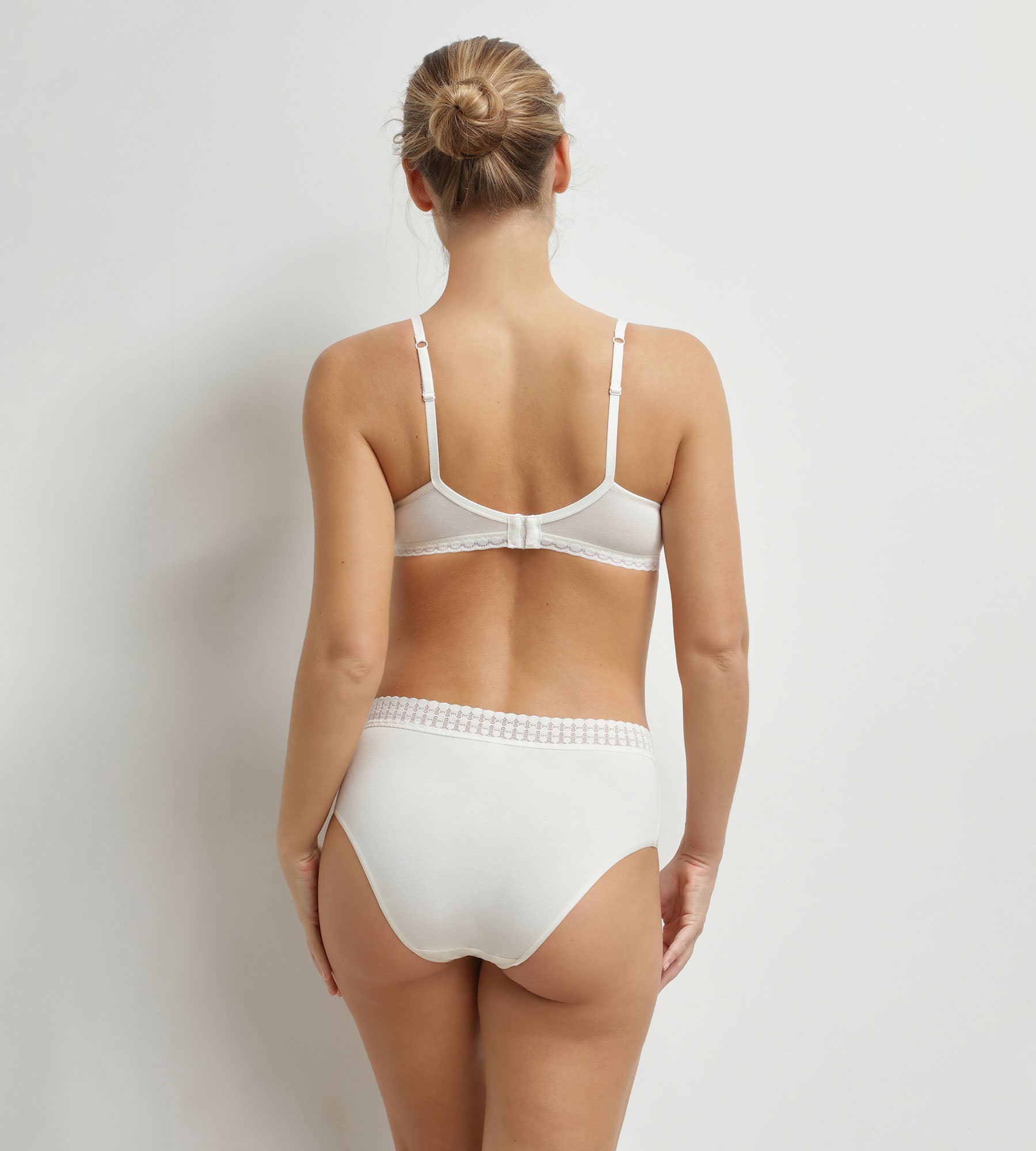 Combineer de witte Daily Coton bh met de bijpassende Daily Coton damesslip voor een zacht, harmonieus geheel.