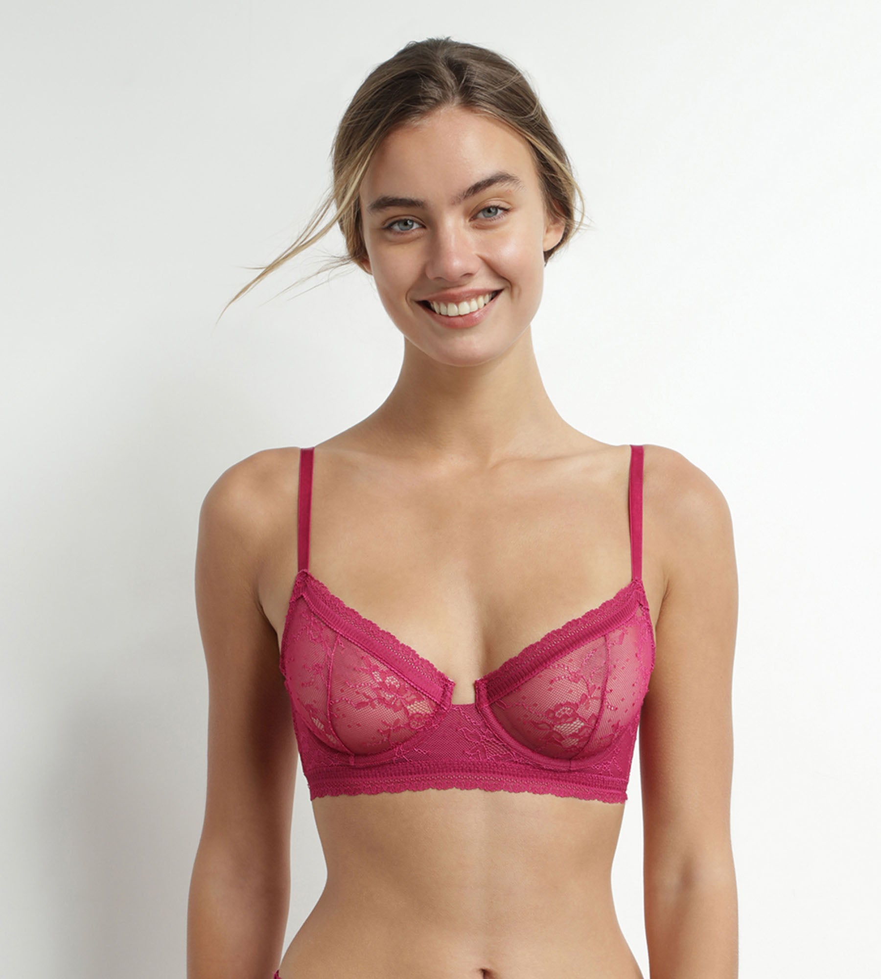 Verzorg je borsten met durf en féminit; dankzij de Dim Romance geborduurde beha in fuchsia bloemenkant!
