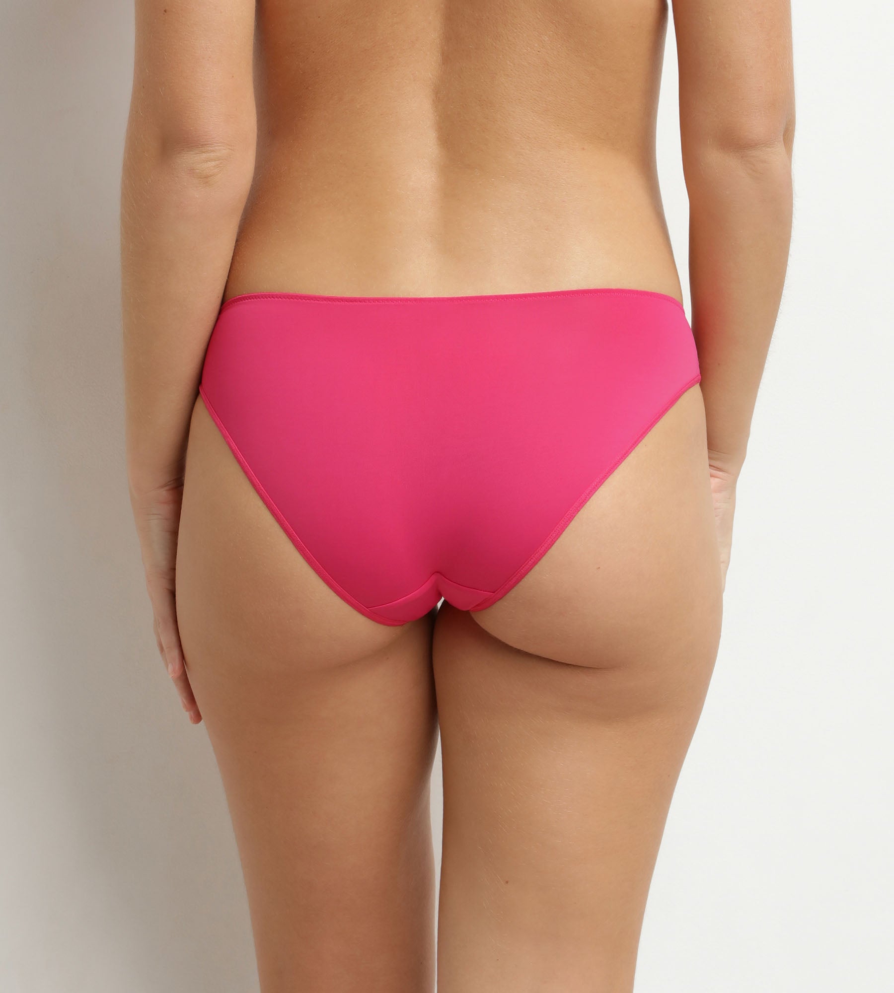Wij zijn dol op deze Dim Féminine damesonderbroek, een smaakvol geherinterpreteerde basic: een zachte microvezel onderbroek met gestikte tule details die de heupen elegant accentueren. De comfortabele pasvorm volgt elke beweging, zonder af te tekenen of samen te drukken. De Intense Fuchsia kleur voegt een gedurfde, vitamineverrijkende touch toe aan je dagelijkse lingerie.