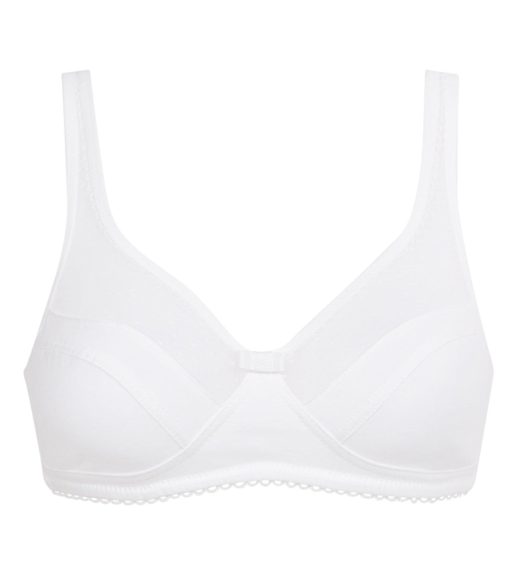 Breng perfecte, natuurlijke en comfortabele ondersteuning voor je borsten met de Generous Organic Cotton Blanc beugelbeha met een plumetis neklijn vol vrouwelijkheid!