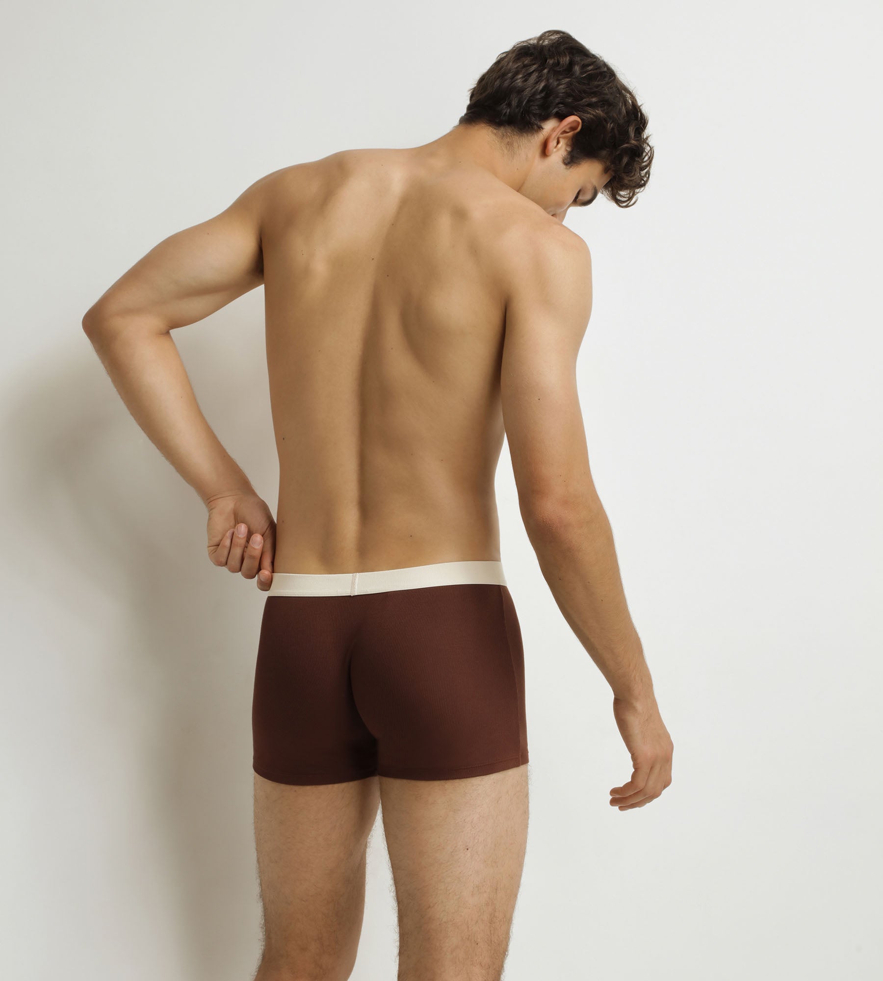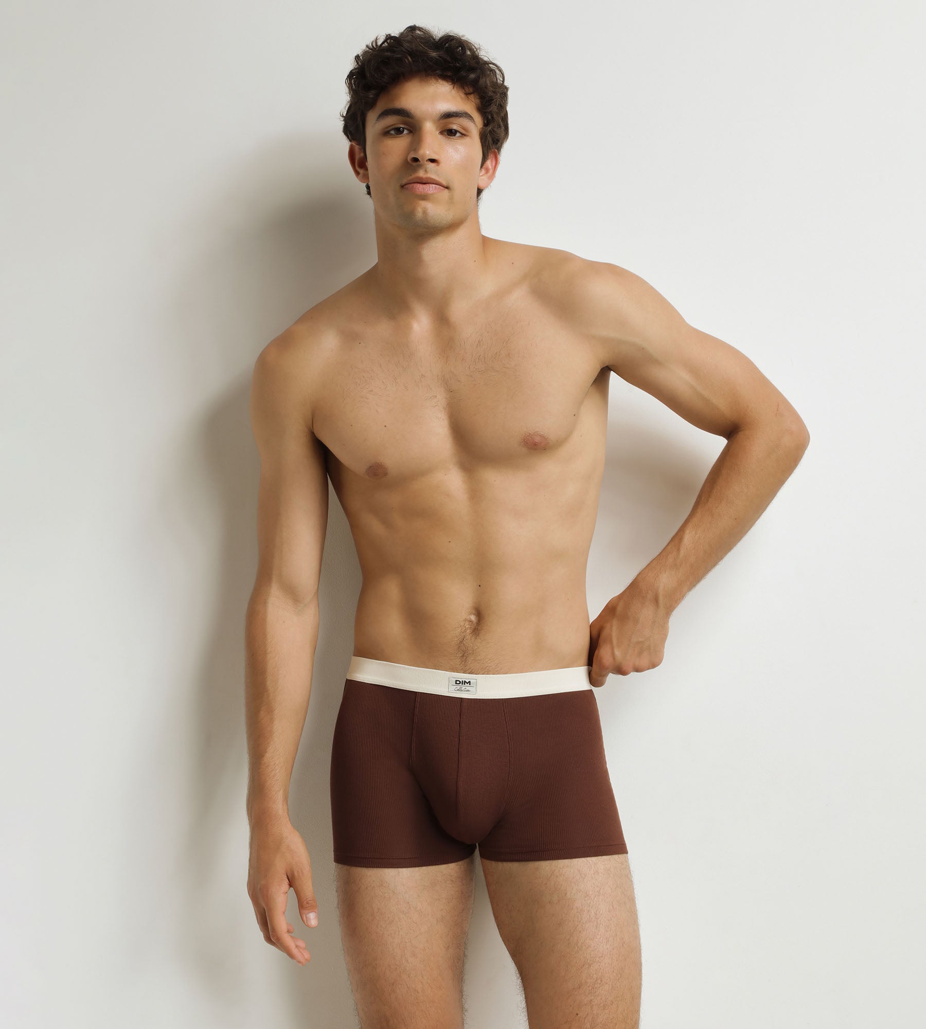 Laat je gepolijste stijl zien met de modalkatoenen herenboxerslip van Dim Elegant, met een Chocolate knit!