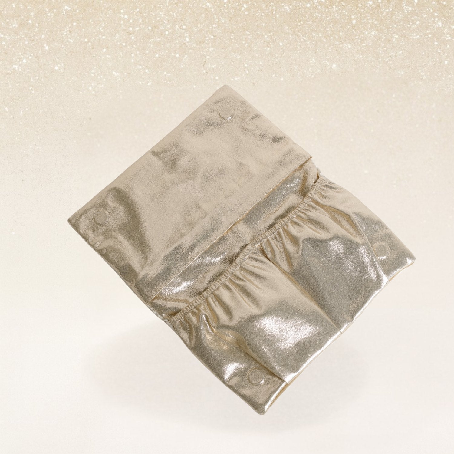 Idéal pour offrir : cette pochette lingerie dorée transforme le rangement en geste glamour — un must pour la saison des fêtes.