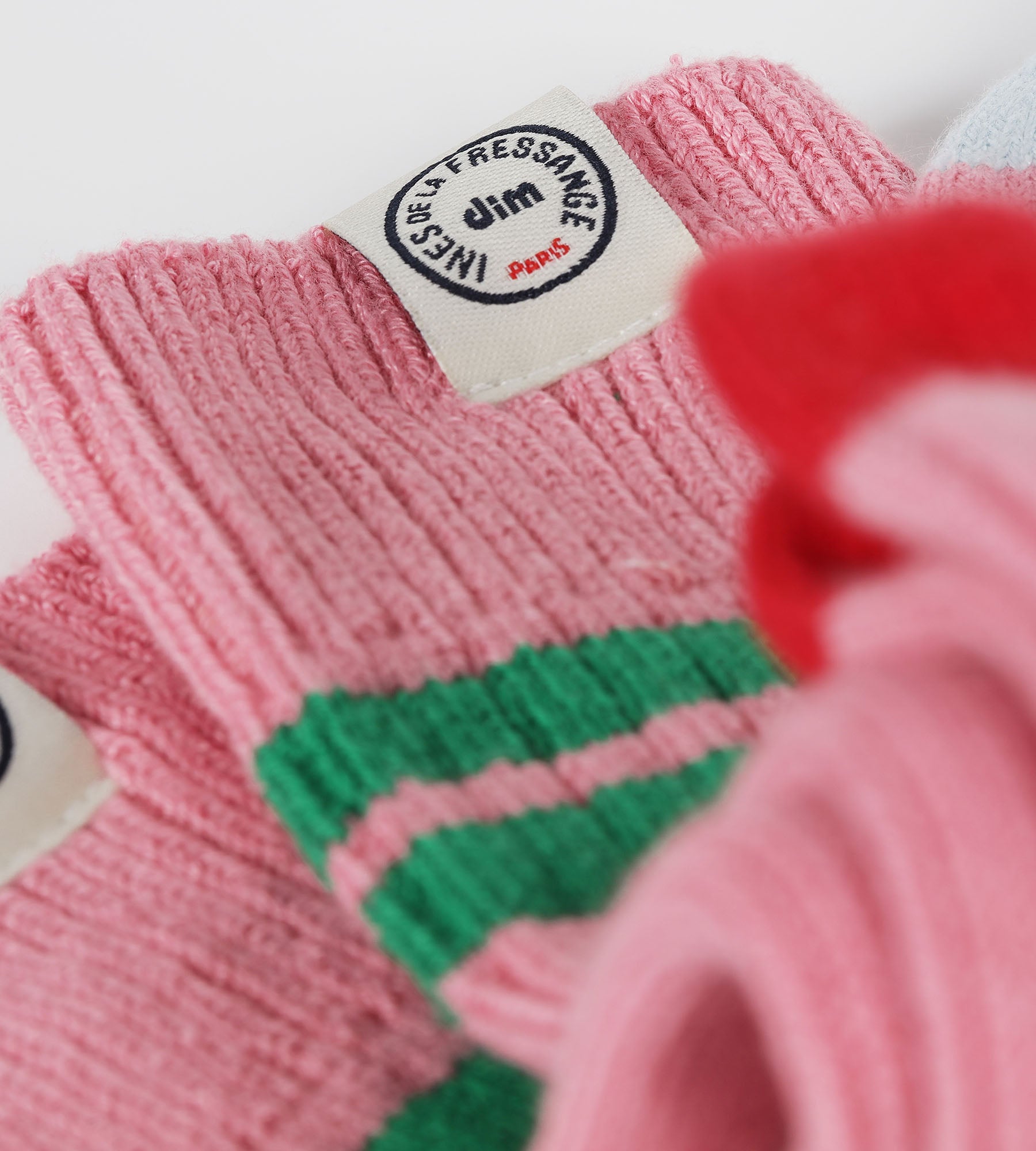 Ontworpen in een zacht roze breisel en geaccentueerd met grafische details - groene strepen aan de bovenkant, rode hakken en blauwe tenen - zullen deze Dim x Inès de La Fressange damessokken je winteroutfits rocken! Dankzij de bamboevezels passen ze zich perfect aan het been aan en houden ze de warmte vast. Draag met laarzen of mocassins om een minimalistische look te verlevendigen. Ze zijn het resultaat van de Dim x Inès de La Fressange-collectie en combineren Parijse allure met veronderstelde eigenzinnigheid.