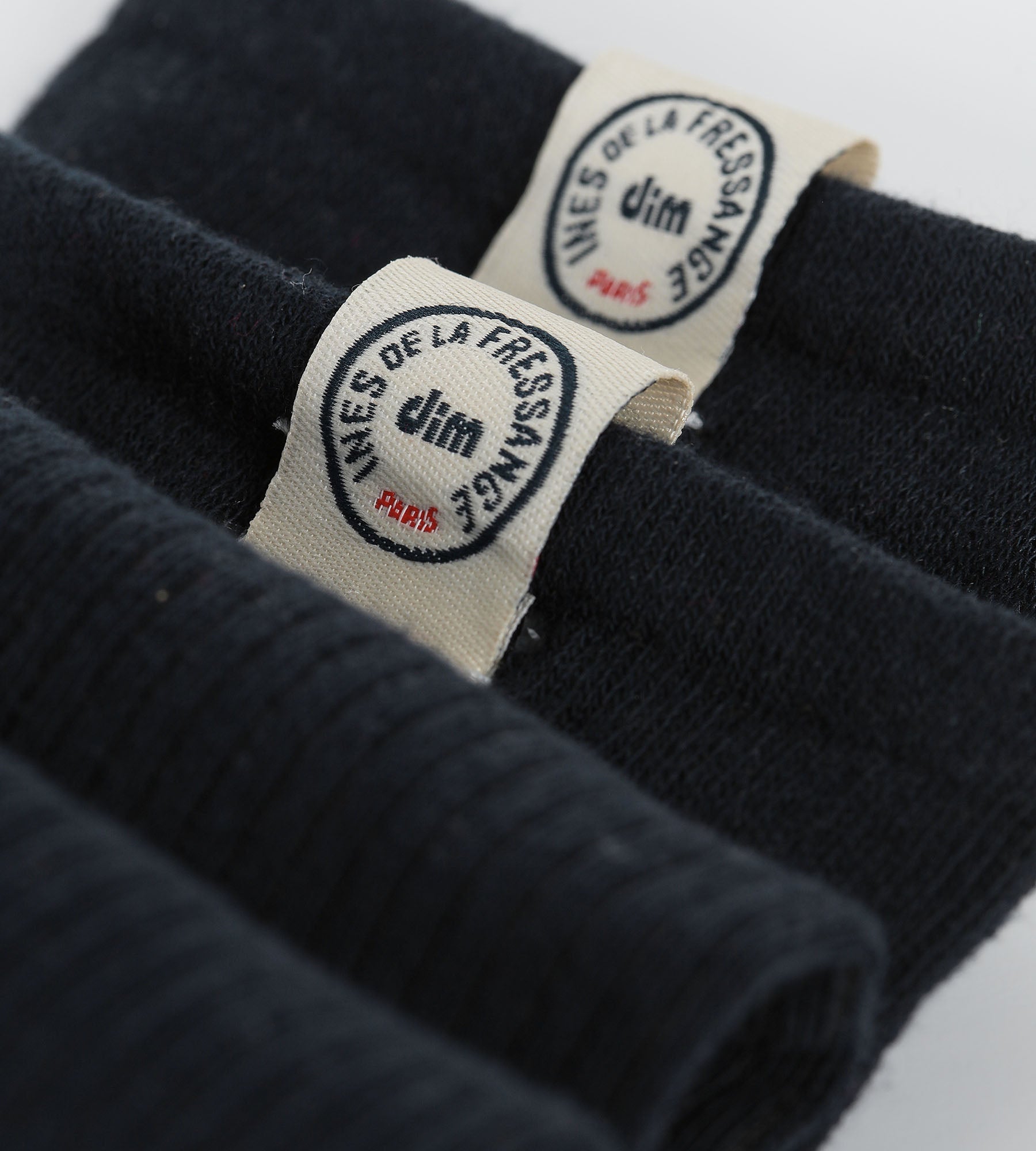 Met hun elegante kleur Saphir zijn deze katoenen maxisokken van Dim x Inès de La Fressange een chique, onmisbare wintergarderobe. Het geribde breisel omsluit zachtjes het been, terwijl de hoge snit het silhouet verbetert. Gedragen met laarzen, een rok of korte broek geven ze een geraffineerde touch aan je alledaagse looks. De Saphir kleur, intens en subtiel, maakt het mogelijk om te variëren met tinten en toch makkelijk te combineren. Ze zijn comfortabel van 's ochtends vroeg tot 's avonds laat en combineren praktisch, warmte en Parijse stijl.