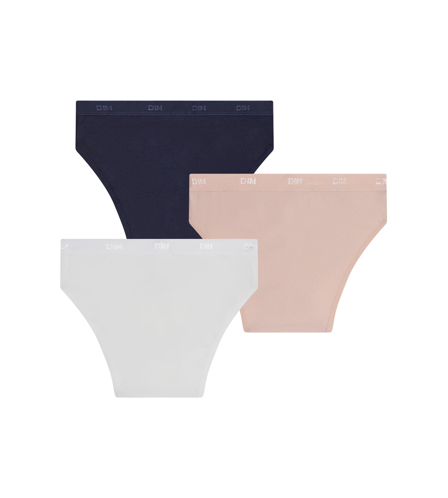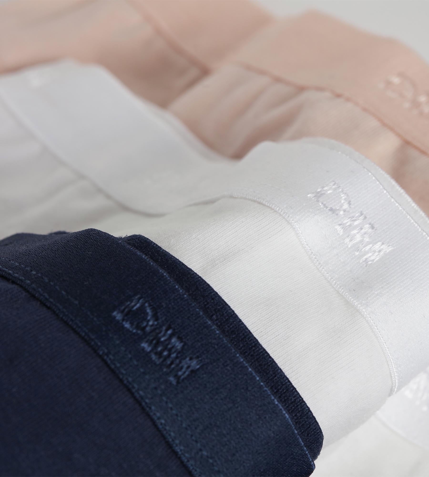 Langdurig comfort en een sobere look: de Les Pockets set van 3 roze, blauwe en witte stretch katoenen slips voor meisjes zal hun dagelijkse bondgenoot zijn!