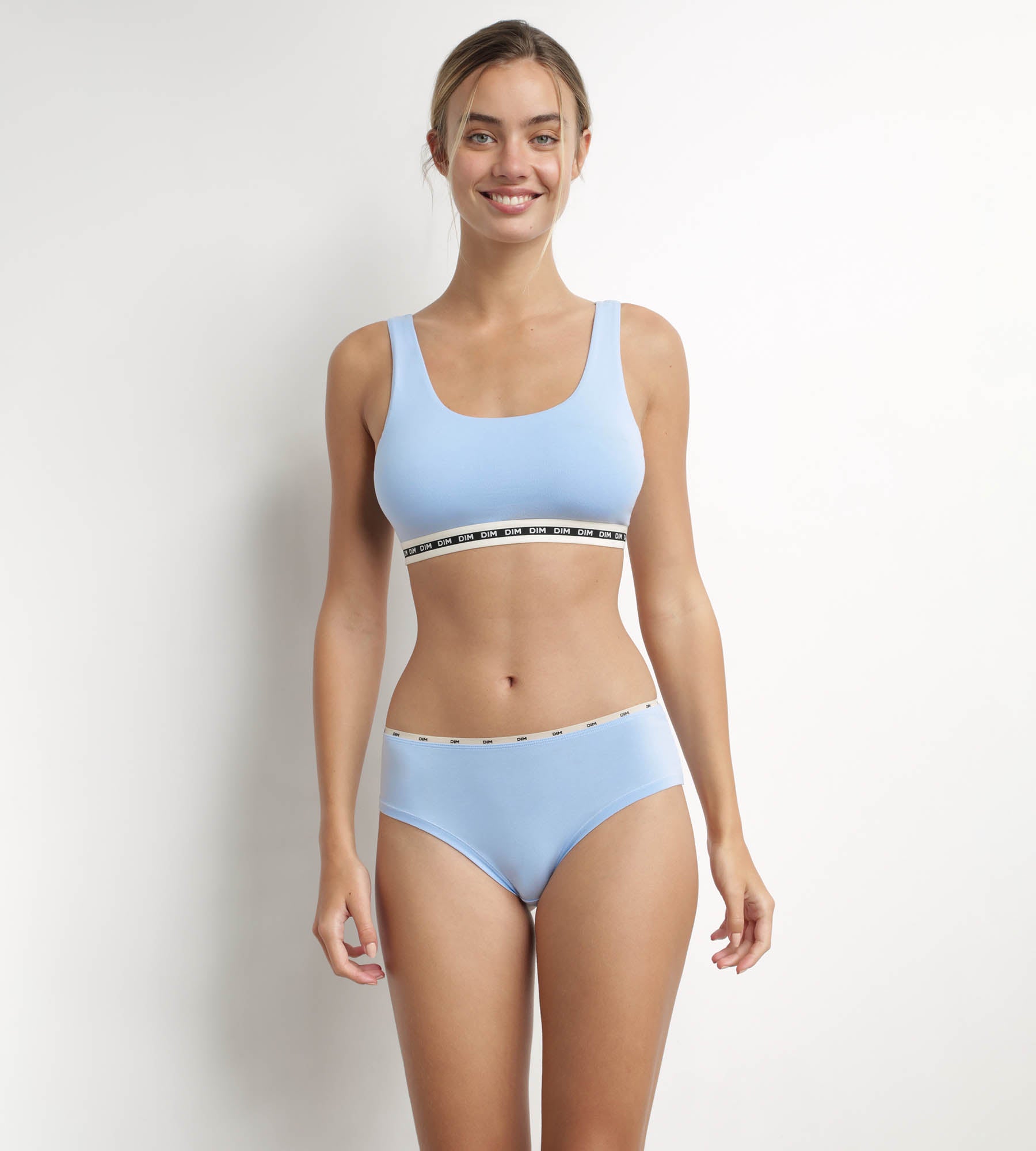 Pair de Bleu Azur Dim Icons Essentiel damesbeha met een damesshort of slip uit dezelfde serie voor een zeer casual ensemble!