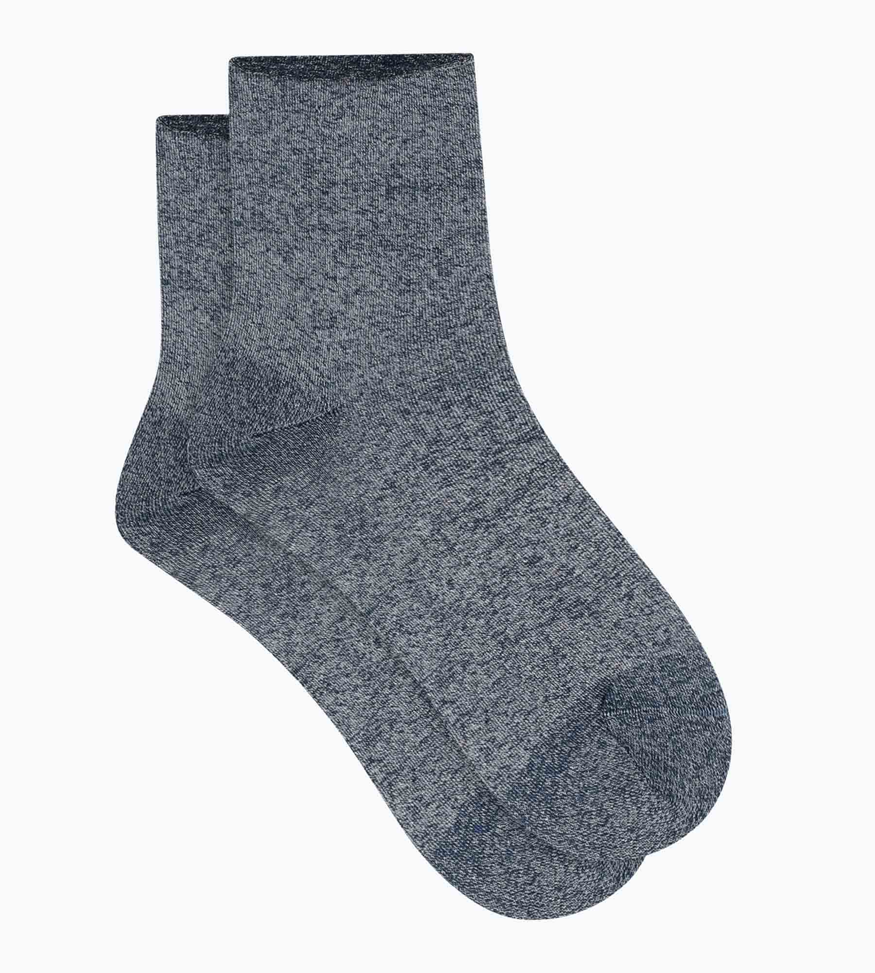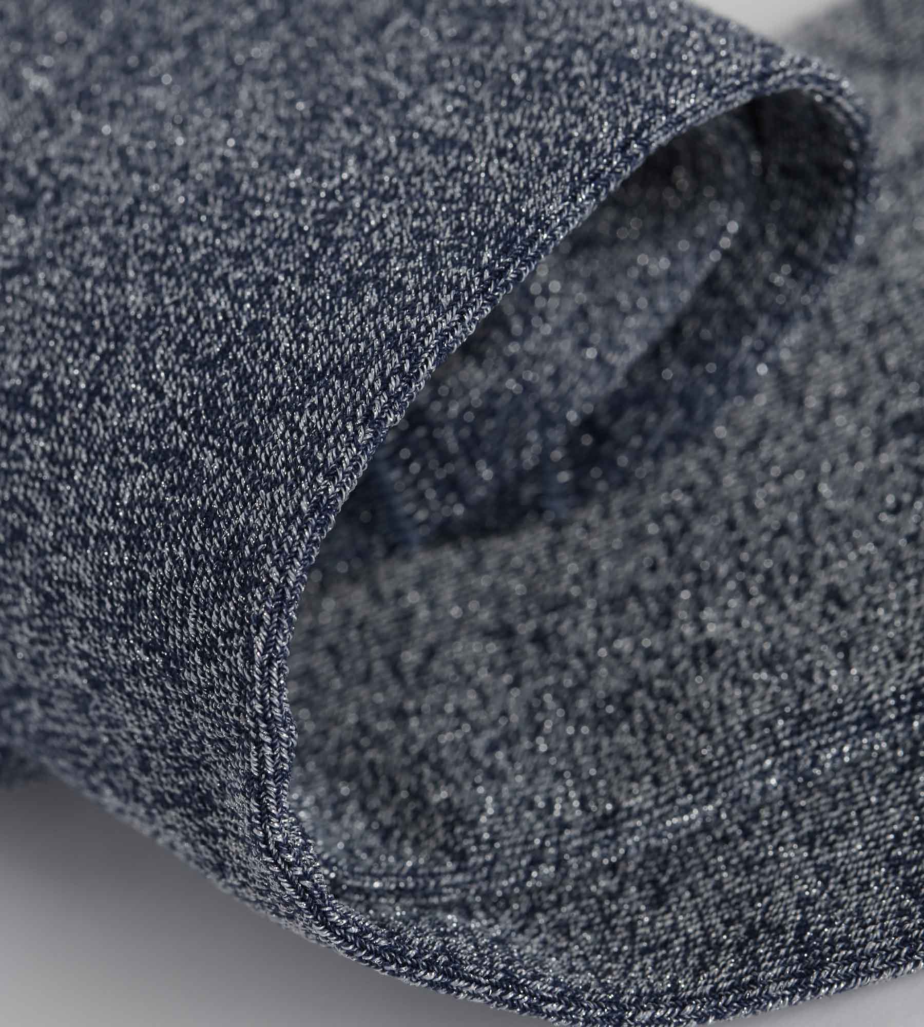 Marineblauw lurex breisel en enkelsnit: de Dim Mode damessokken zijn discreet glanzend en moeiteloos stijlvol.