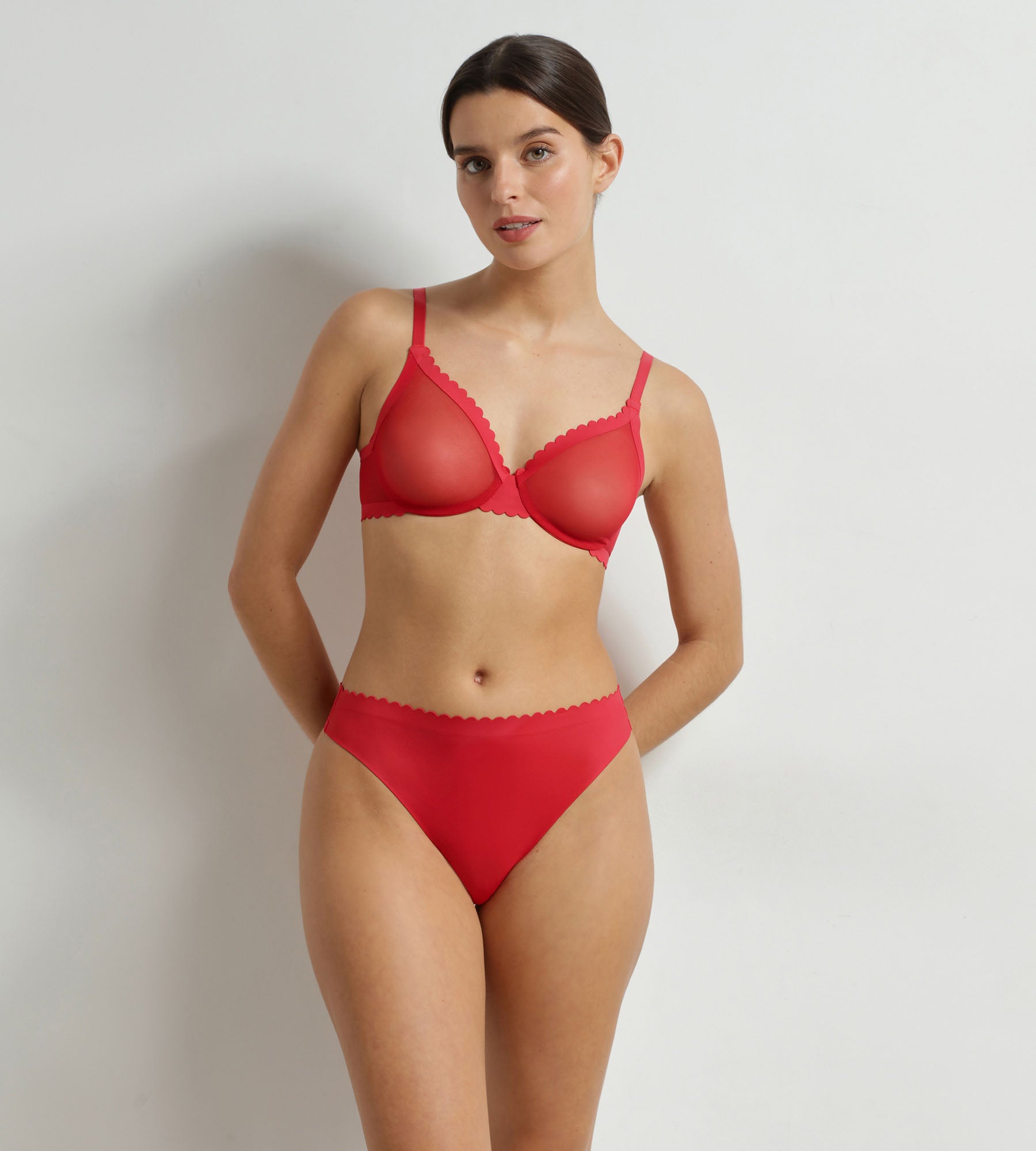 Ontdek de beugelbeha uit de Dim Body Touch Cheeky serie, verkrijgbaar in Valentijnsrood of Zwart!