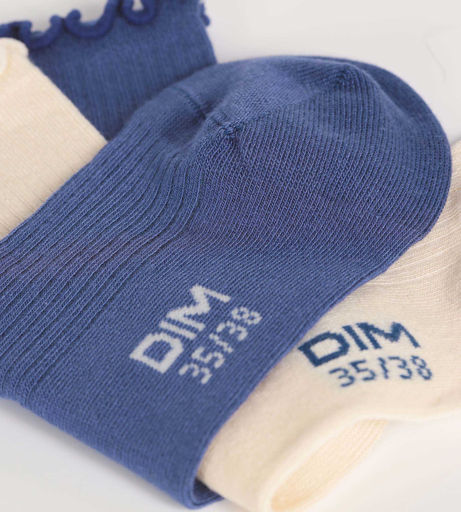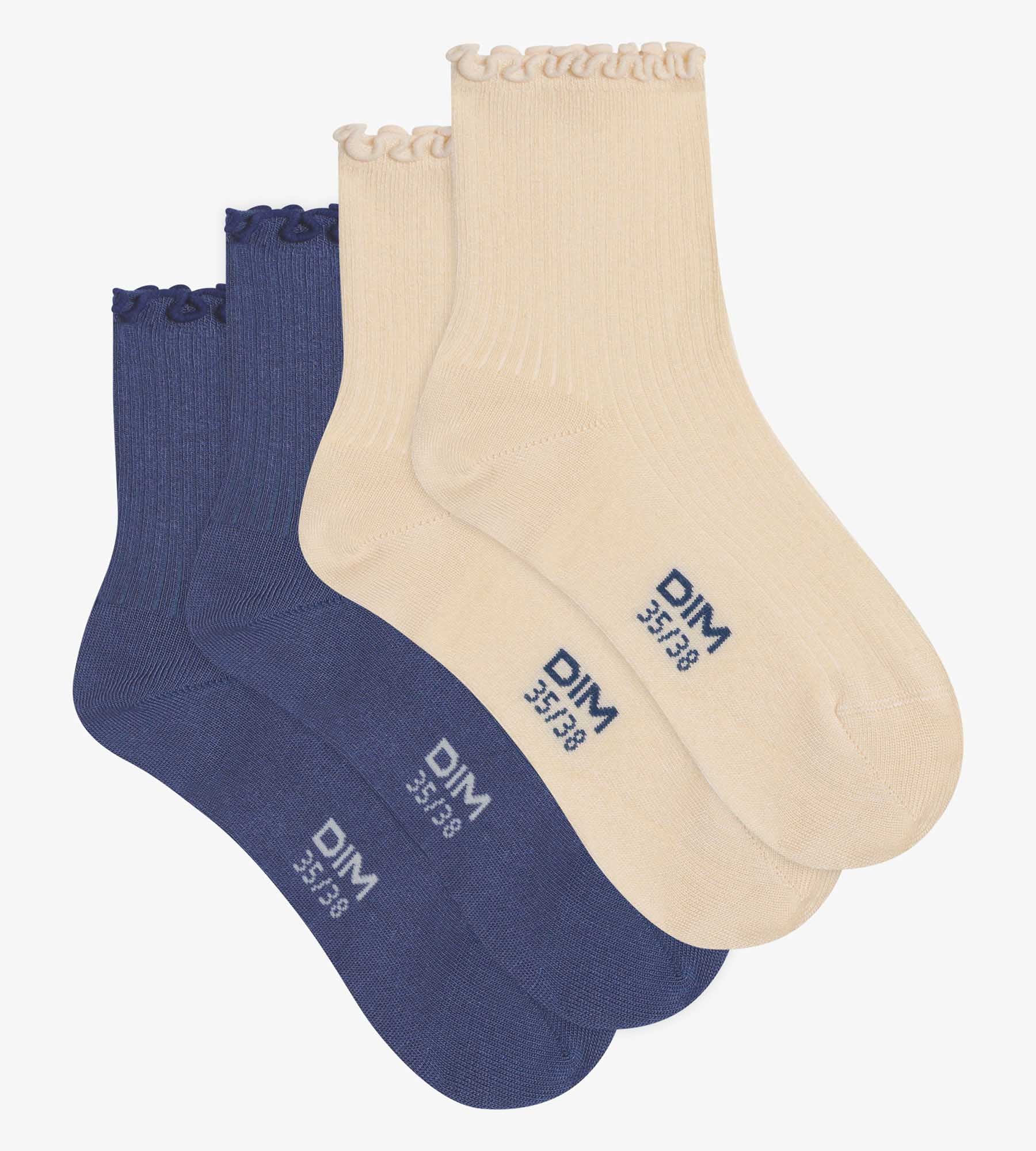 Set van 2 paar dames kousen met ruches Blauw Crème DIM Modal