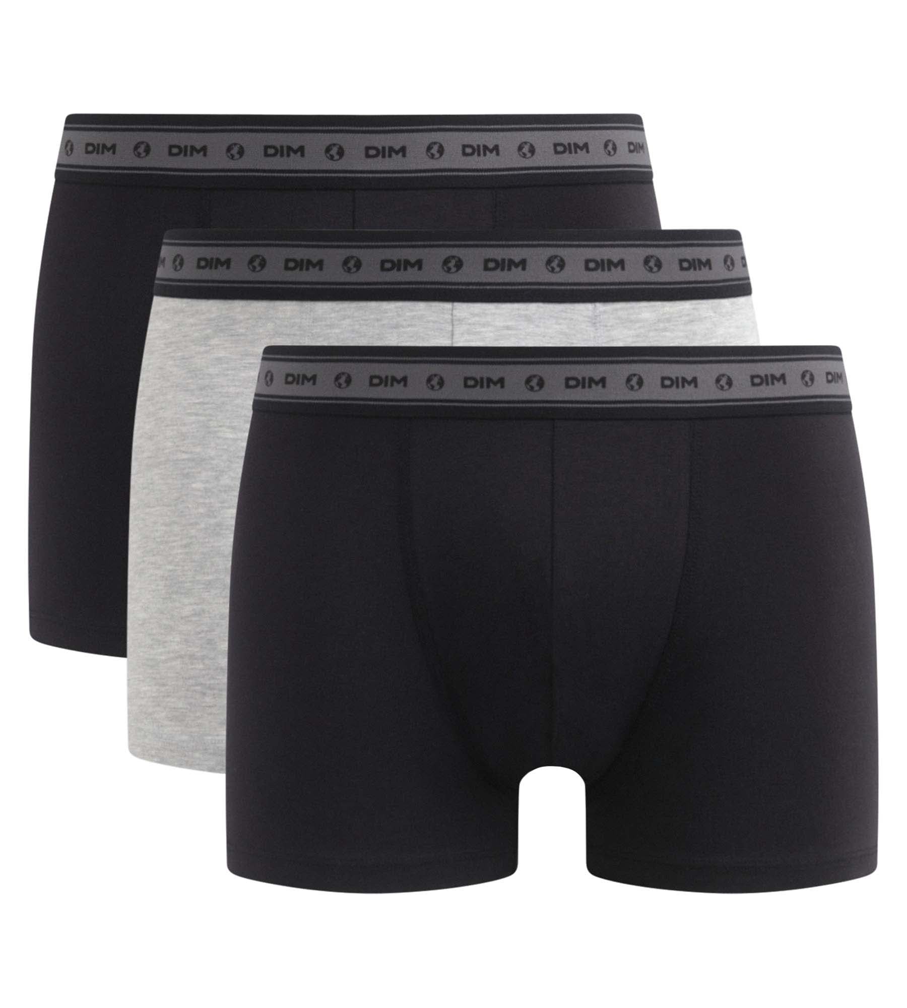 Set van 3 boxershorts van biologisch katoen voor Heren Zwart Grijs DIM Good