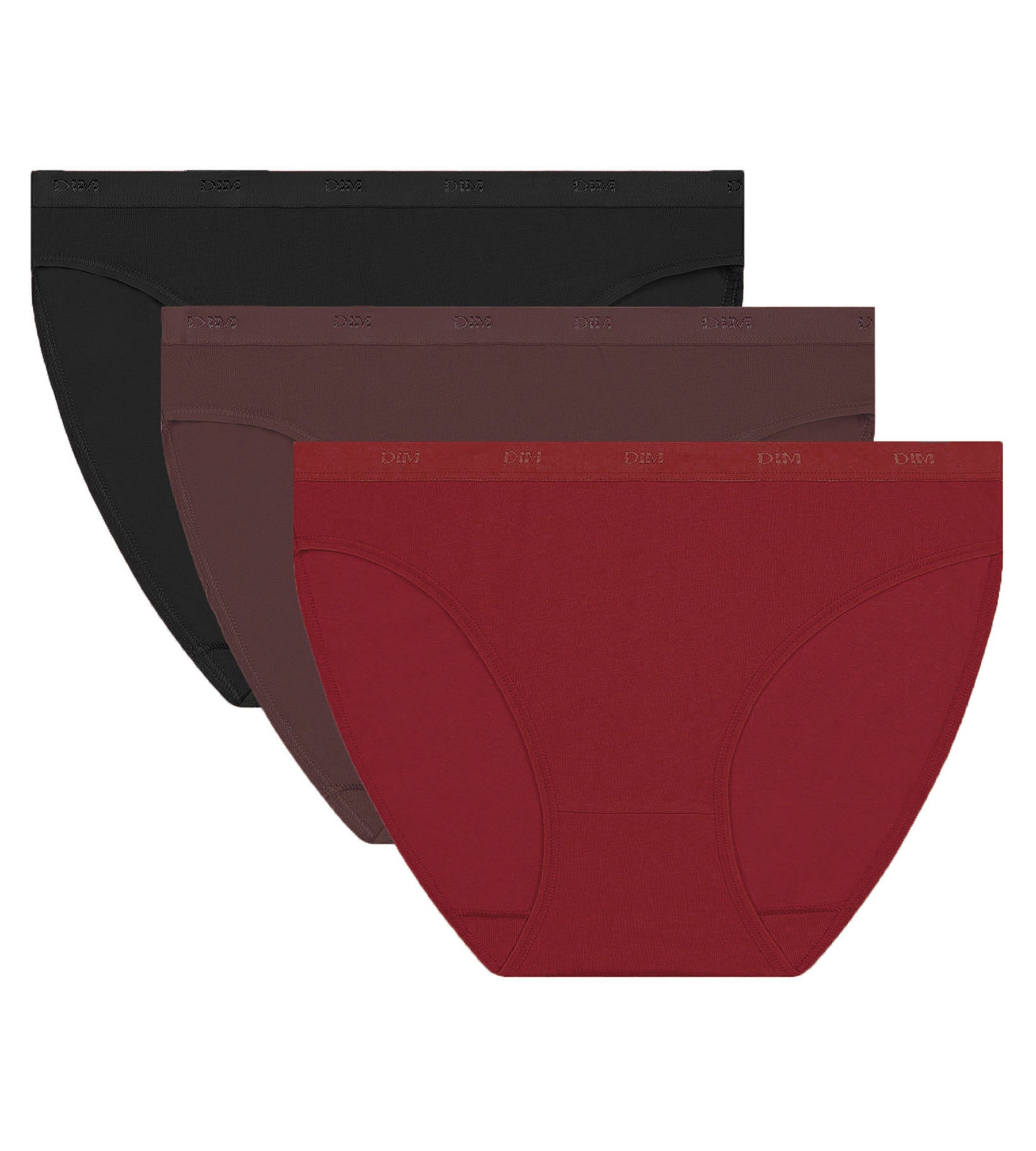Graag de assertieve kleuren van de Les Pockets Ecodim set van 3 damesonderbroeken in zwart, rood en cacao stretchkatoen!