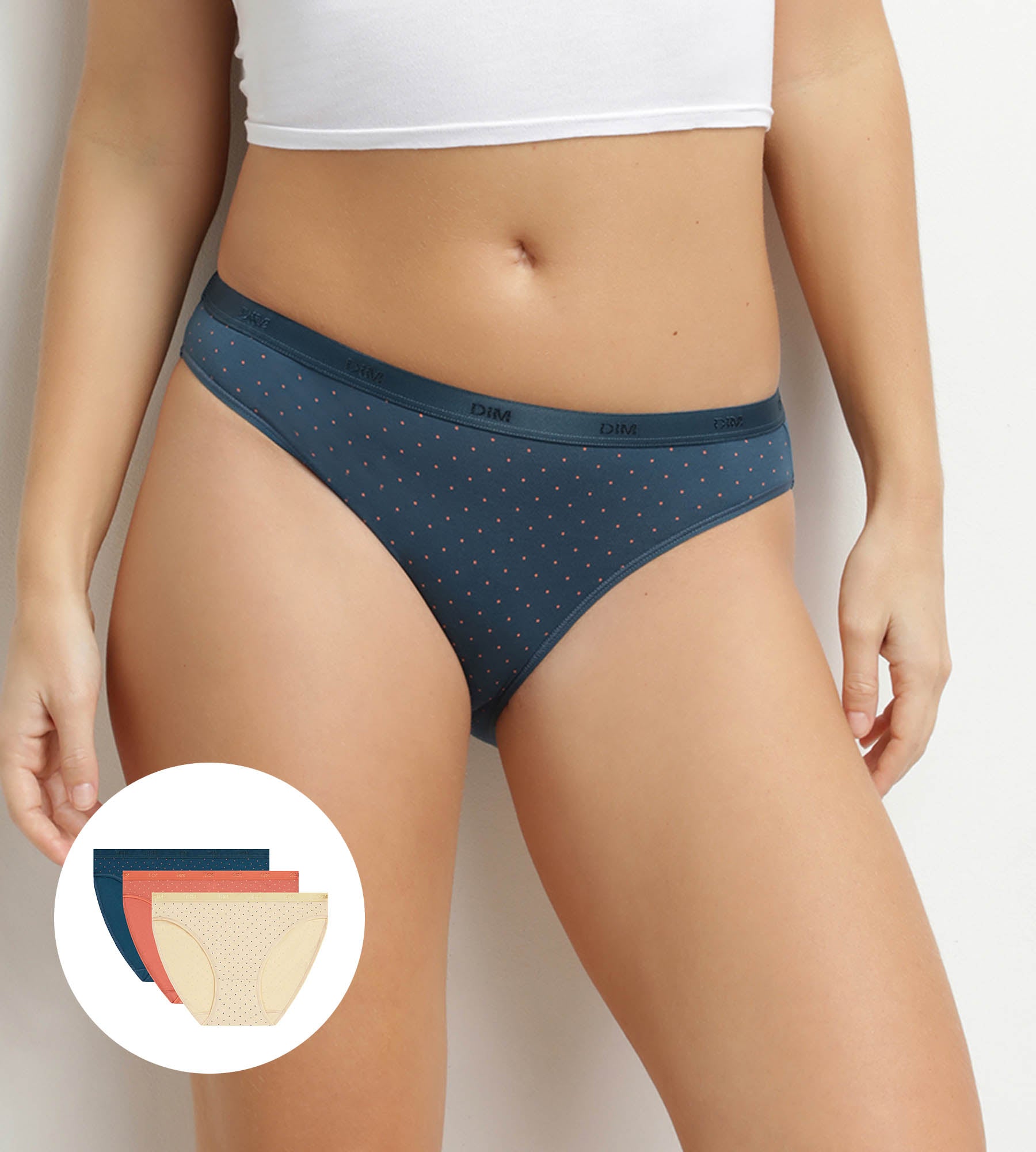 Set van 3 damesslips van stretchkatoen met stippen Dim Les Pockets