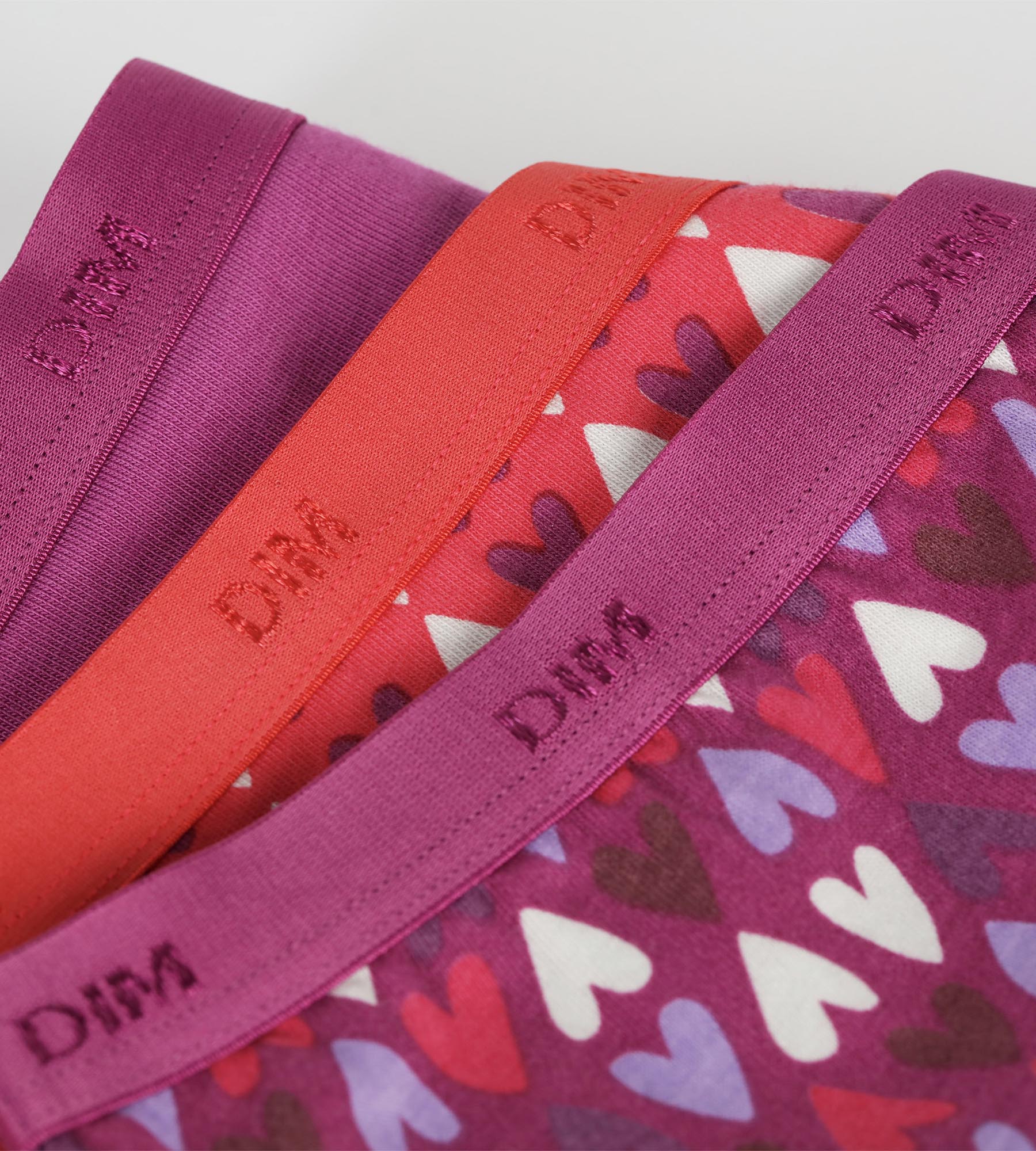 Set van 3 Les Pockets meisjesslips van stretchkatoen in paars en rood met hartjes
