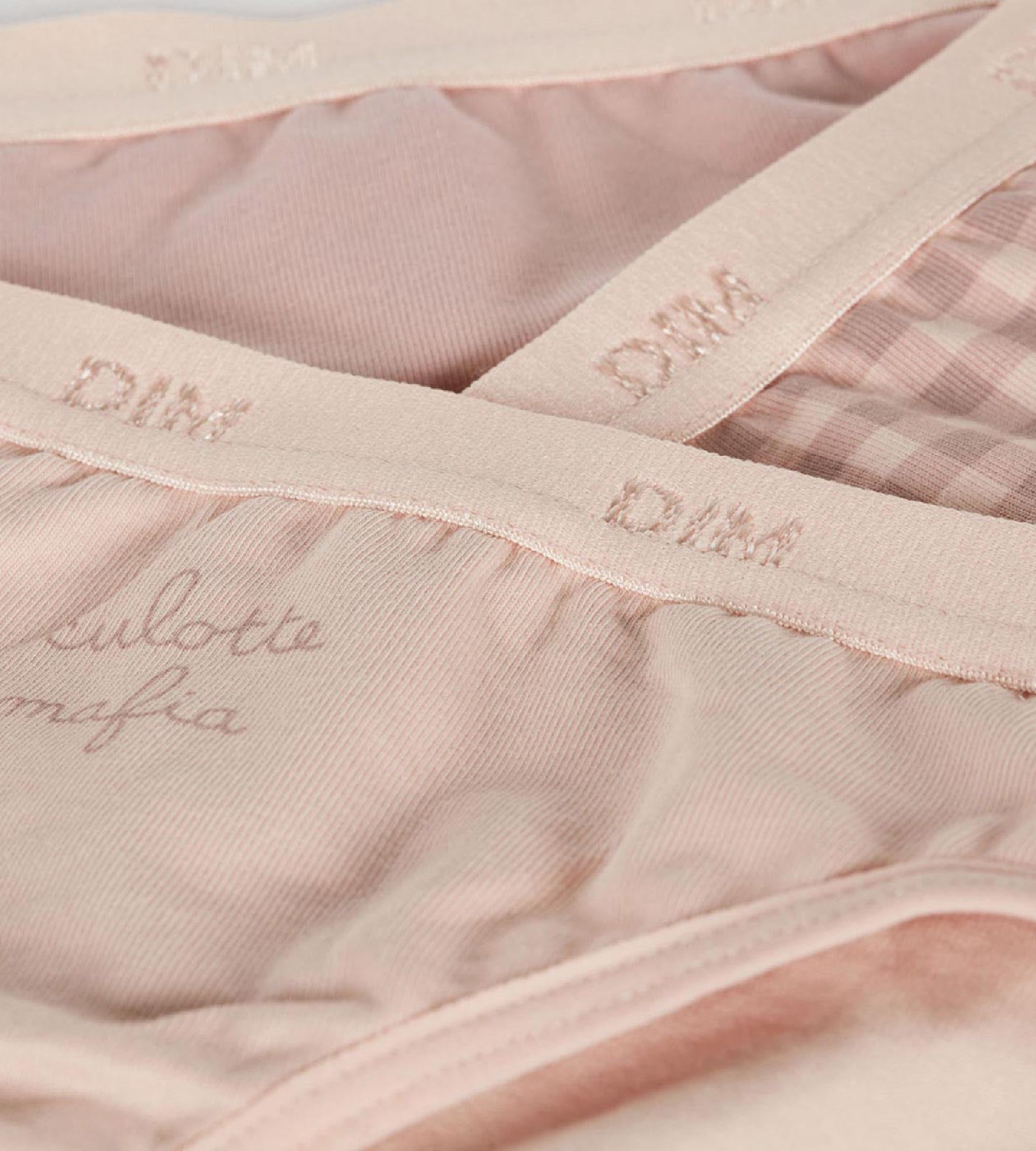 De DIM Pockets set bestaat uit 3 katoenen slips, sommige in Tender Pink, andere in Mauve, met een zeer regressieve tegelprint of discrete markeringen en zal tieners die op zoek zijn naar zachtheid en vrouwelijkheid zeker bevallen! Gemaakt van zachte stof, met een rekbare tailleband en ton-sur-ton binding, is ons meisjesondergoed 100% comfortabel!
