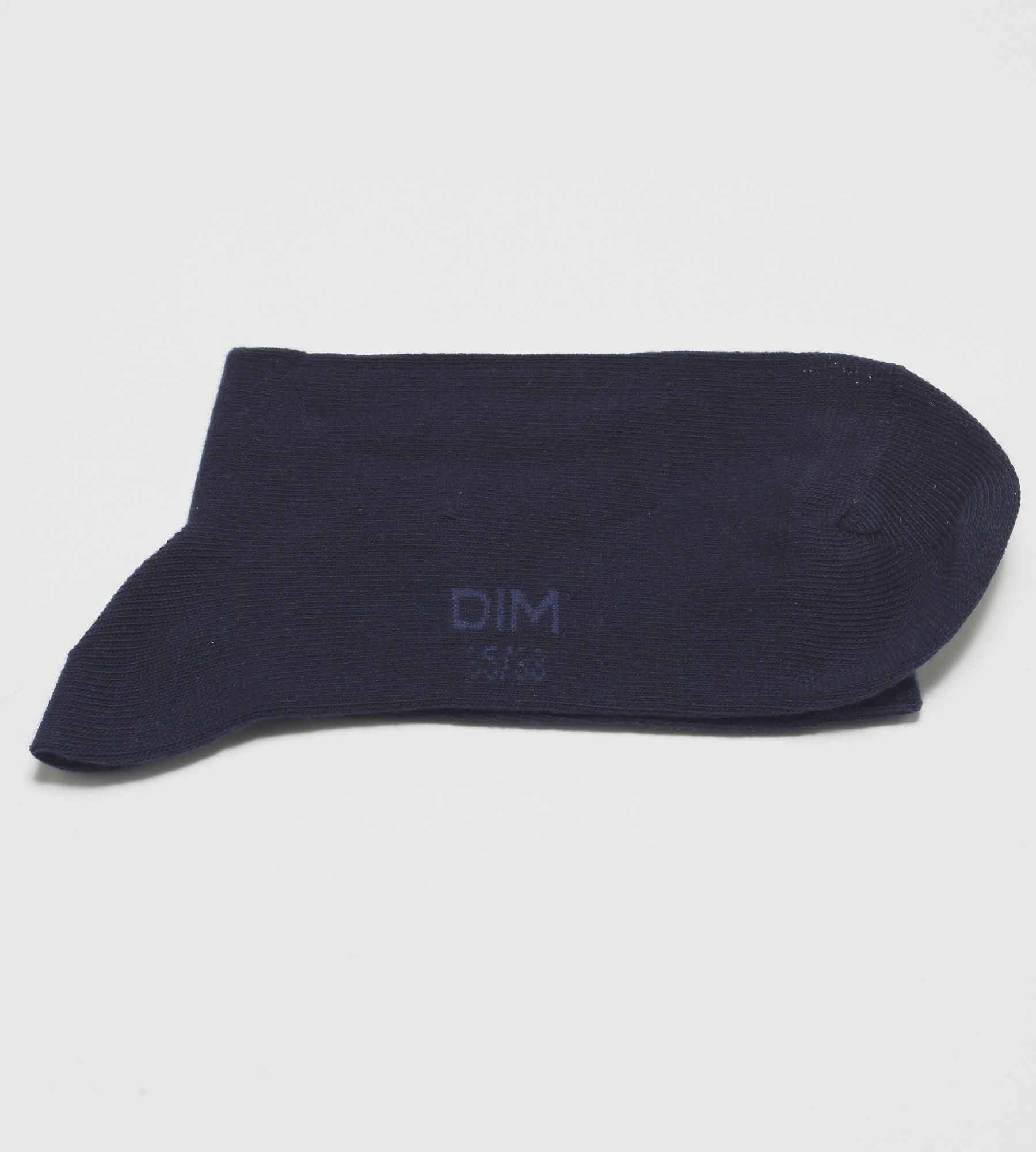 Dankzij de sterkere, glanzende gekamde katoenvezels en de zachte bovenband blijven de effen dames kousen Dim goed zitten en vormen ze een onberispelijke aanvulling op uw outfits! In een marineblauwe uitvoering past het 3-paar pak katoenen damessokken Dim Basic overal bij en blijft het tijdloos.