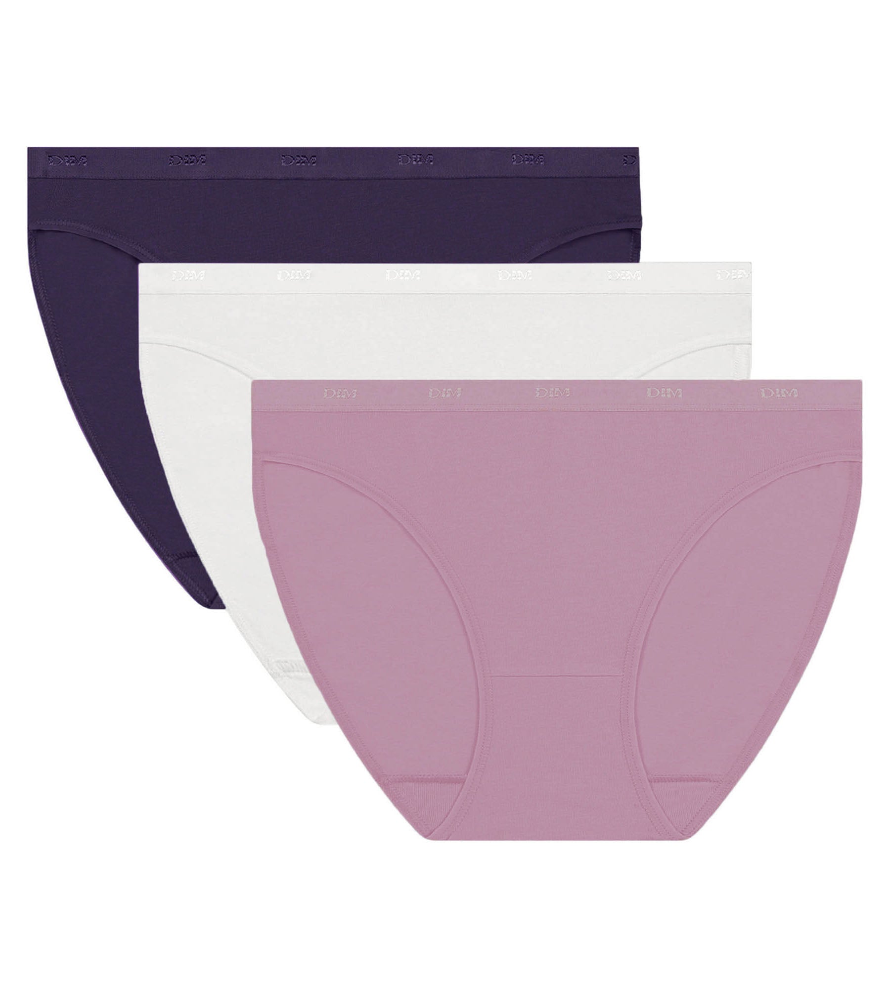 Zachtheid en moderniteit nodigen zichzelf uit in je lade met deze set van 3 Les Pockets Ecodim damesonderbroeken in Violet en Wit stretch katoen.