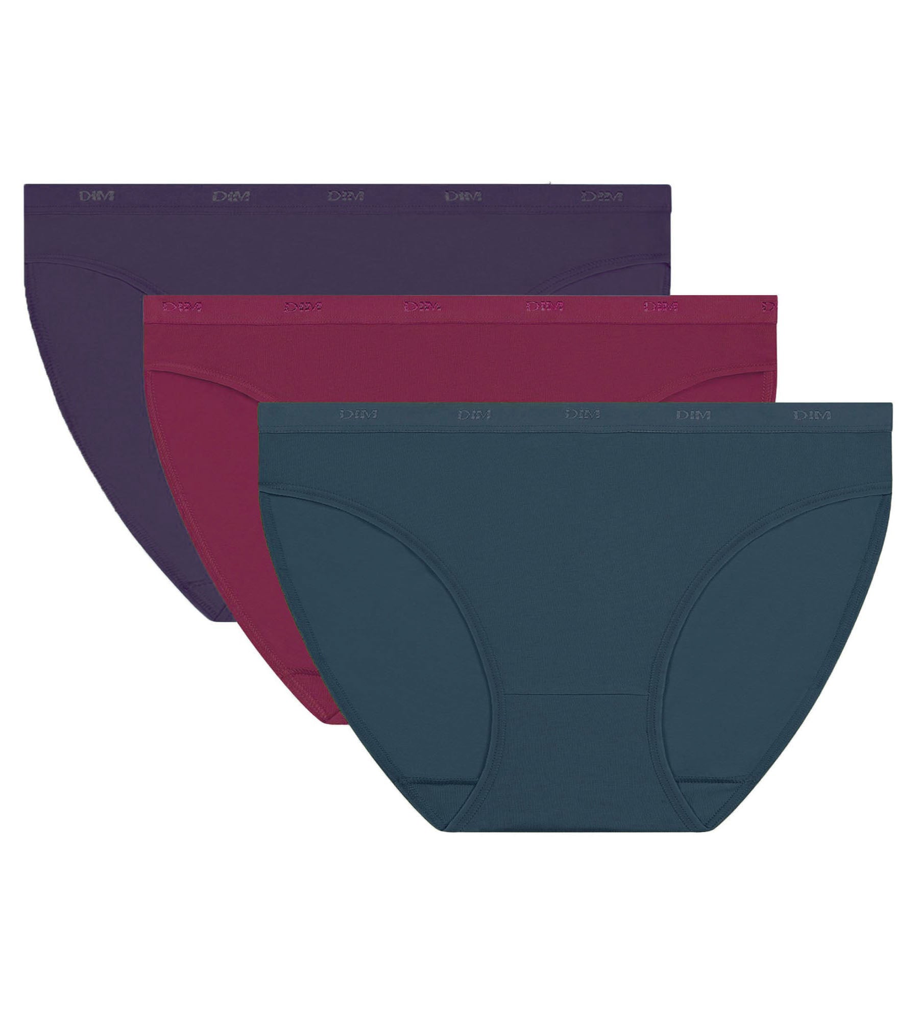 Set van 3 paarse, rode en groene damesslips Les Pockets Ecodim