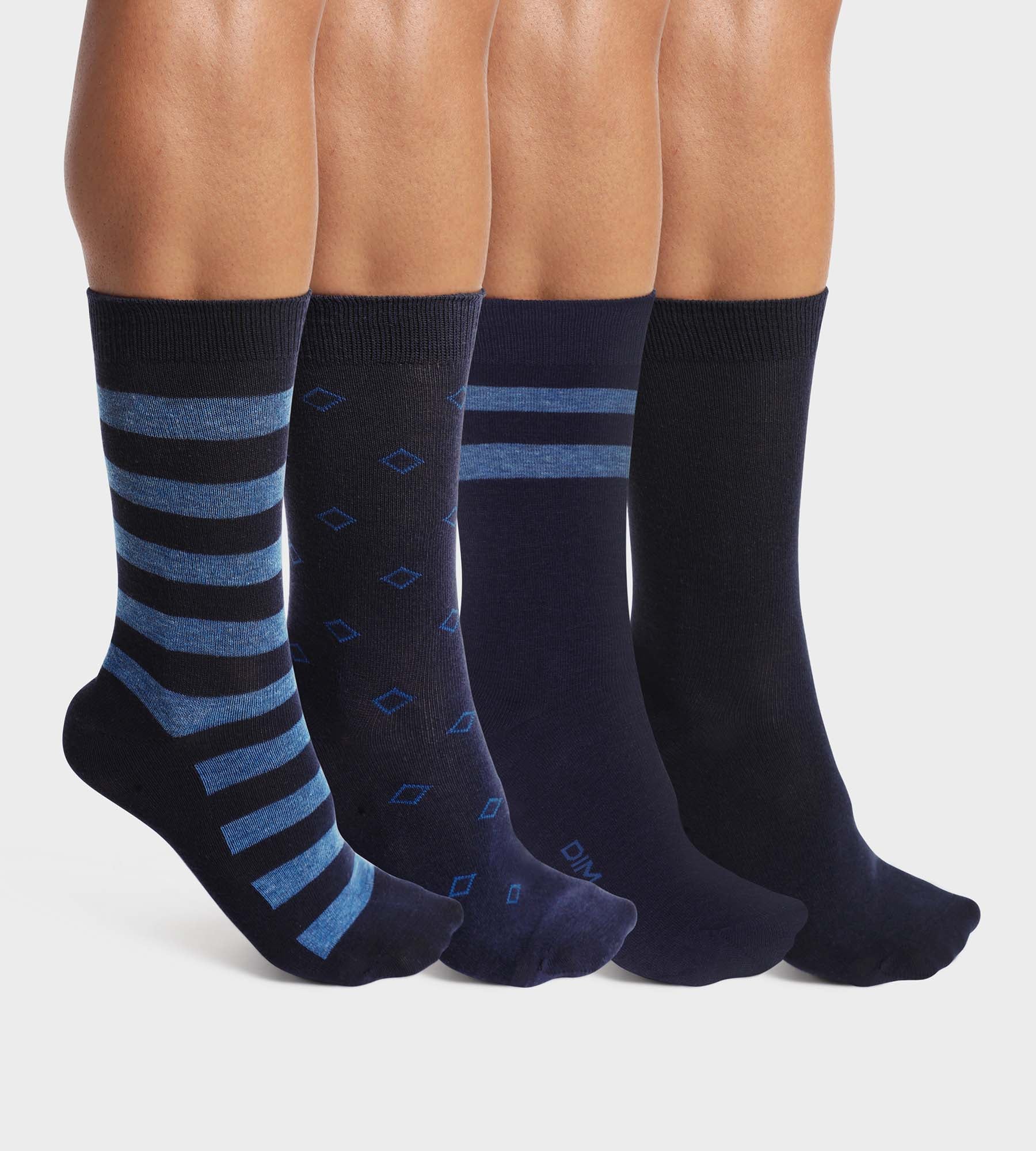Set van 4 paar Heren EcoDim Style Navy Gestreepte Katoenen Sokken