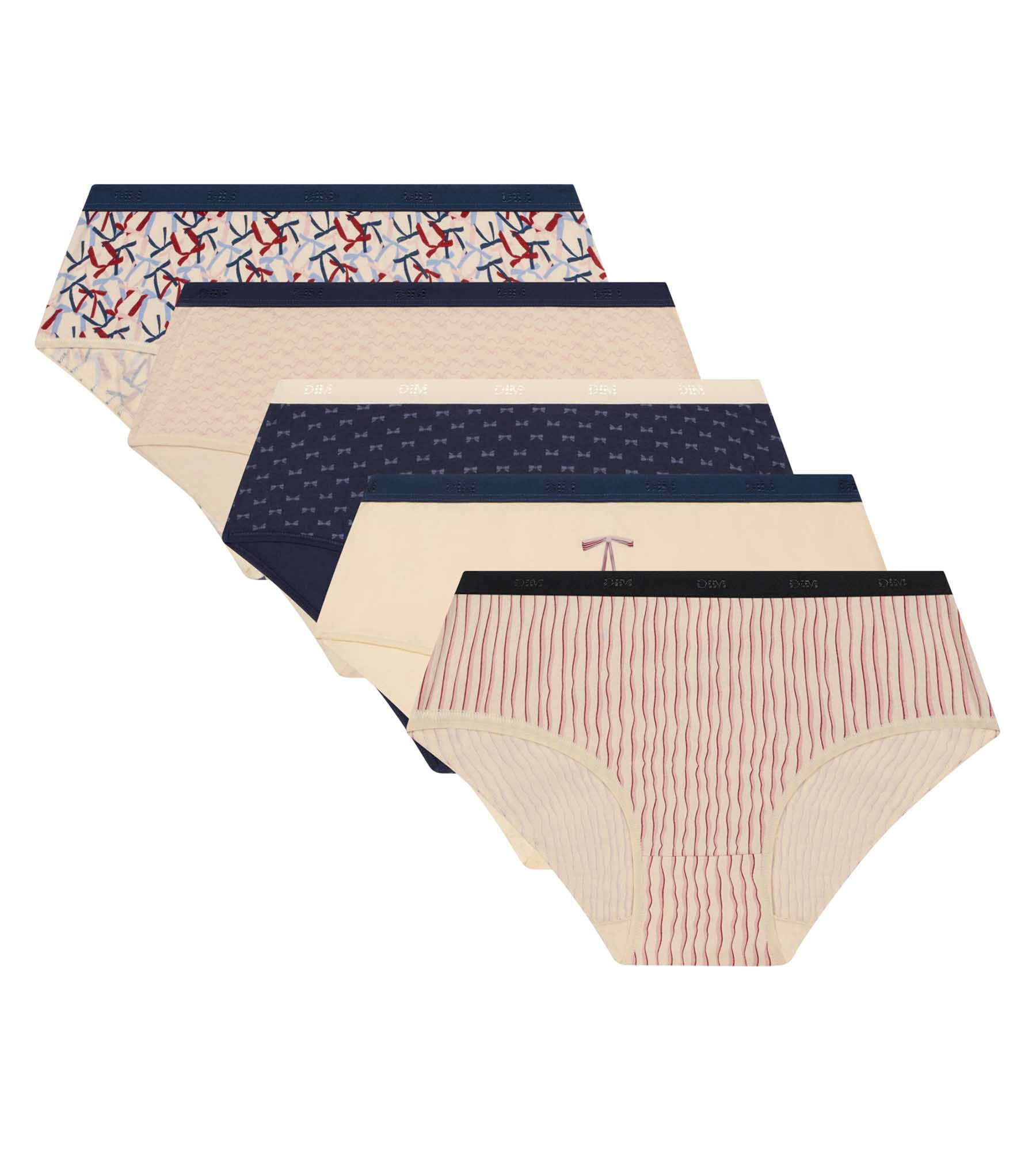 Set van 5 damesboxershorts met roodblauwe linten Les Pockets