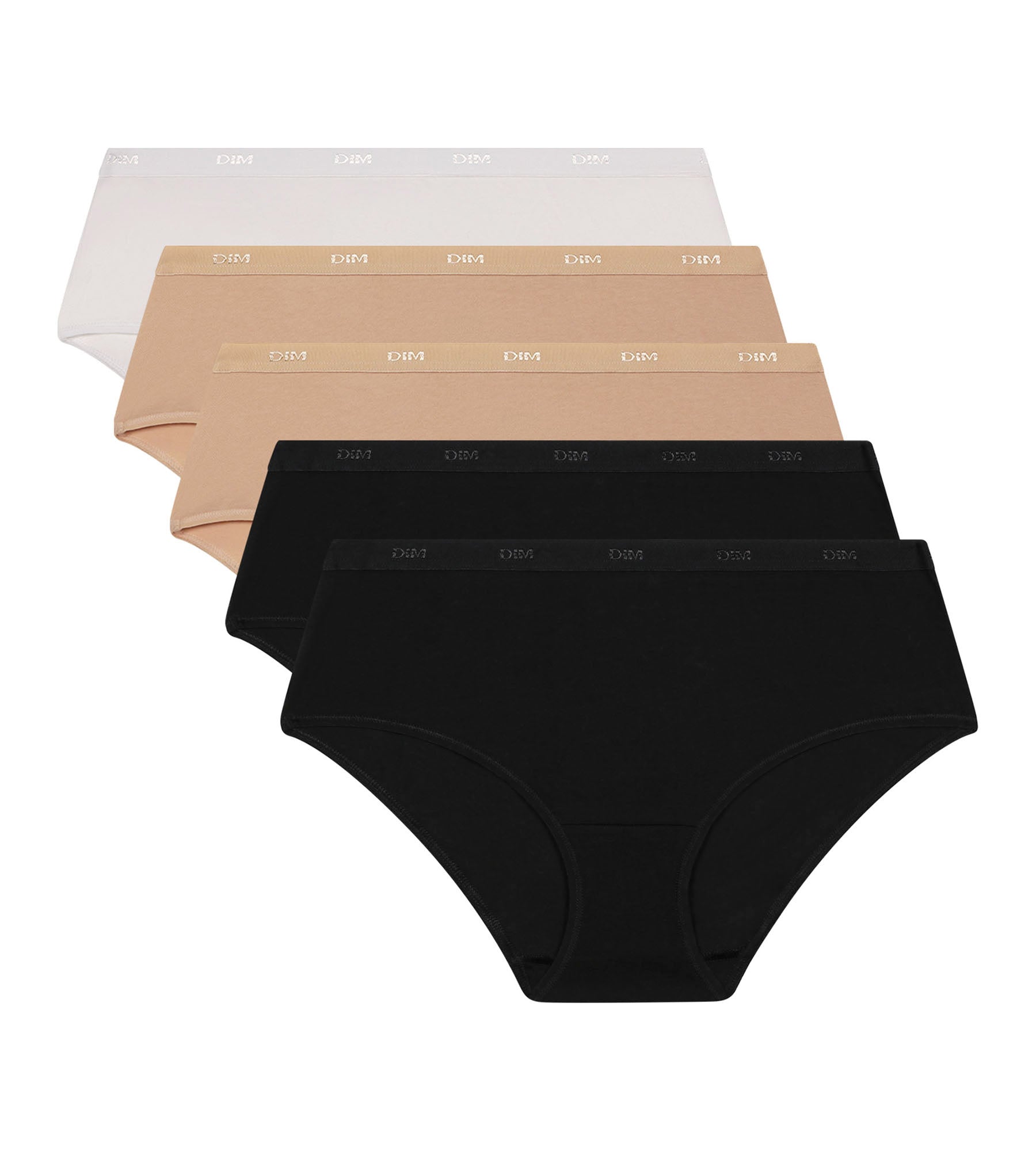 Set van 5 katoenen shorties voor dames Zwart Nude Wit Les Pockets Ecodim