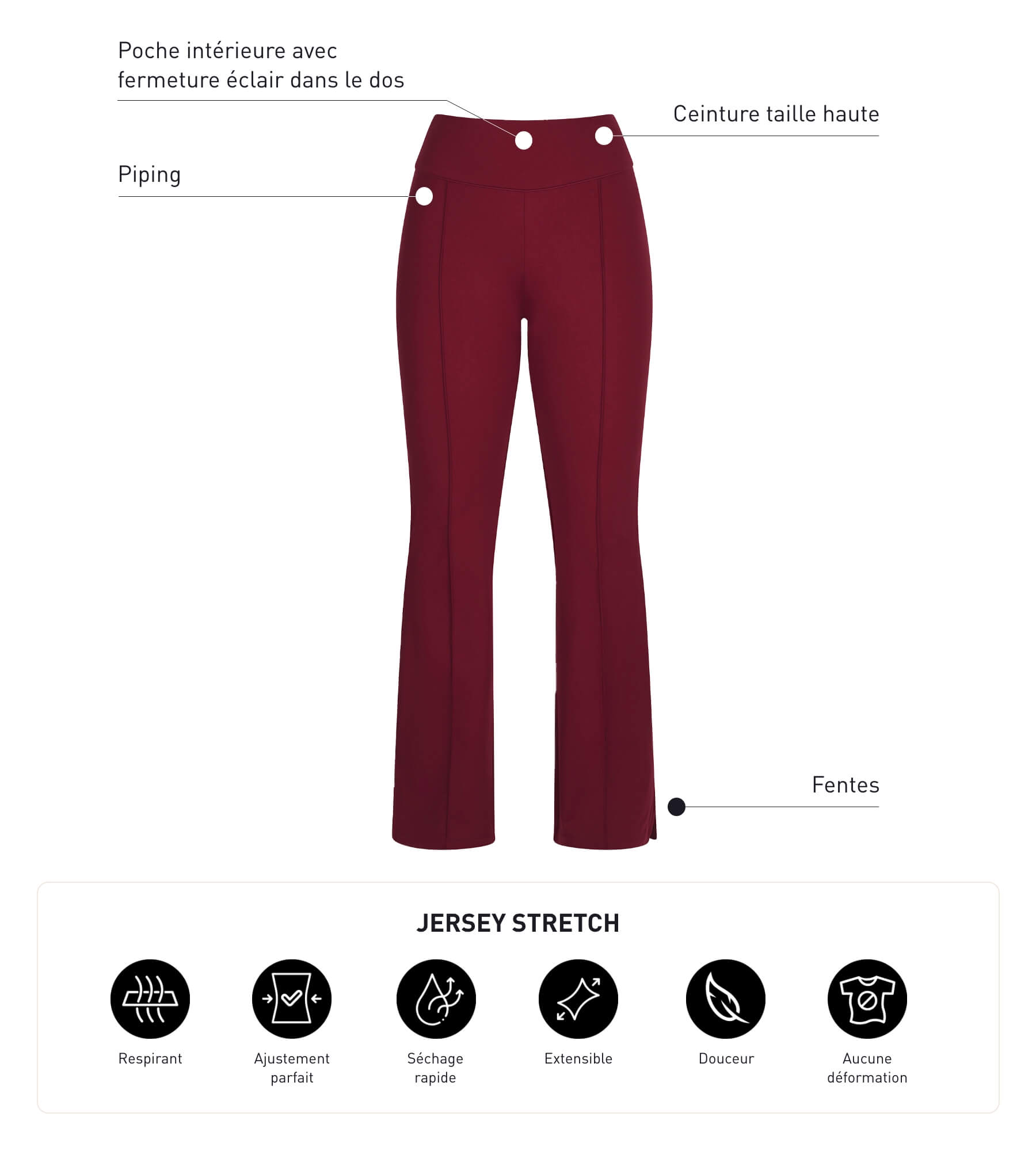 Swing met gemak en moderniteit dankzij de DIM Move uitlopende sportbroeken voor dames in bordeauxkleurige stretchjersey!