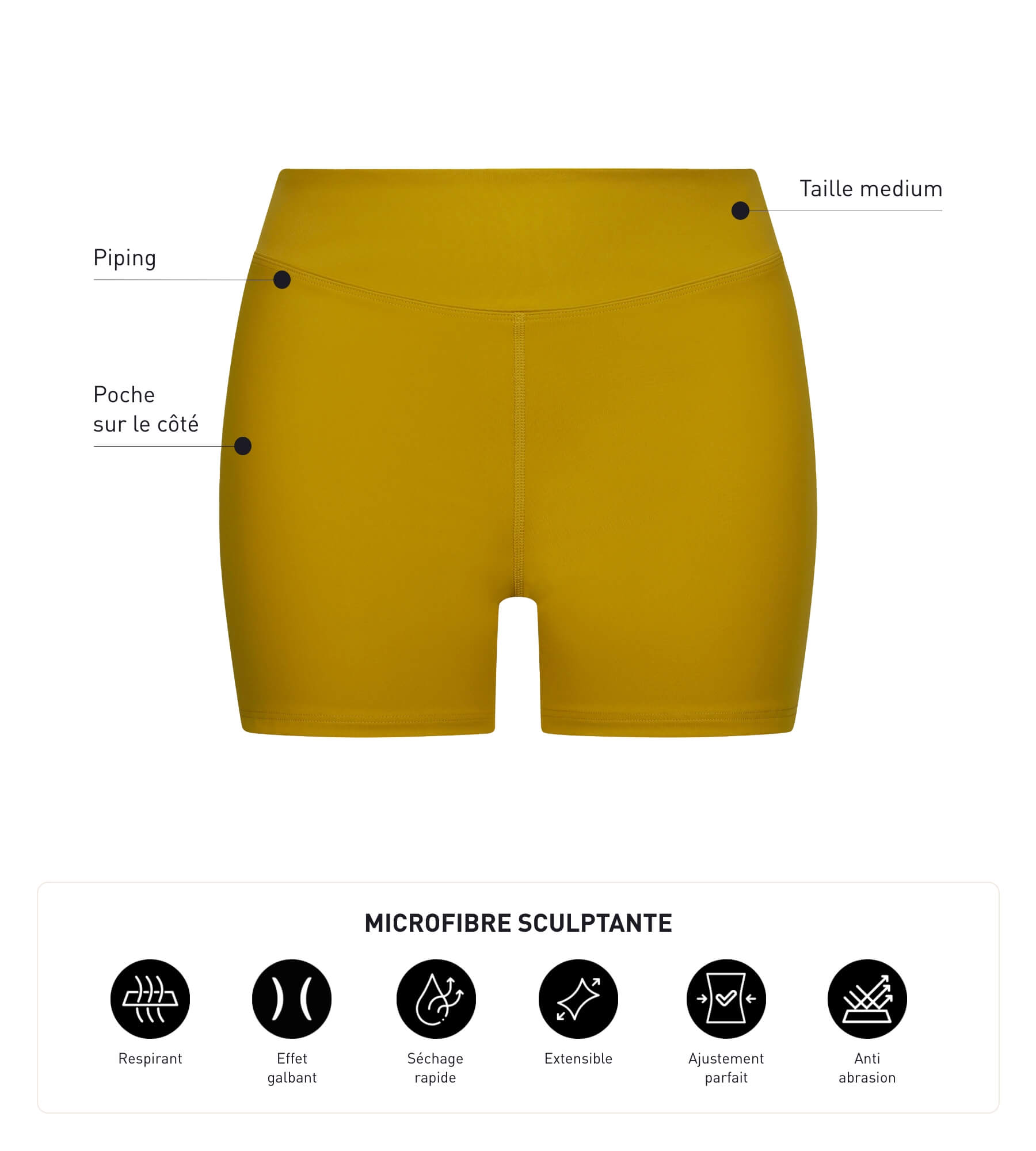 Sculpt uw figuur moeiteloos met de DIM Move damesshort! Dankzij de dichte, soepele technische microvezelstof omhult de DIM Move sportshorts je vorm zonder je te belemmeren in je bewegingen en drogen ze snel. De naadloze constructie, met een elastische tailleband, valt rond de taille zonder deze te vernauwen of de huid te beschadigen. Wij zijn dol op de modieuze kleur Olijfgroen en de grafische gearceerde vlecht.
