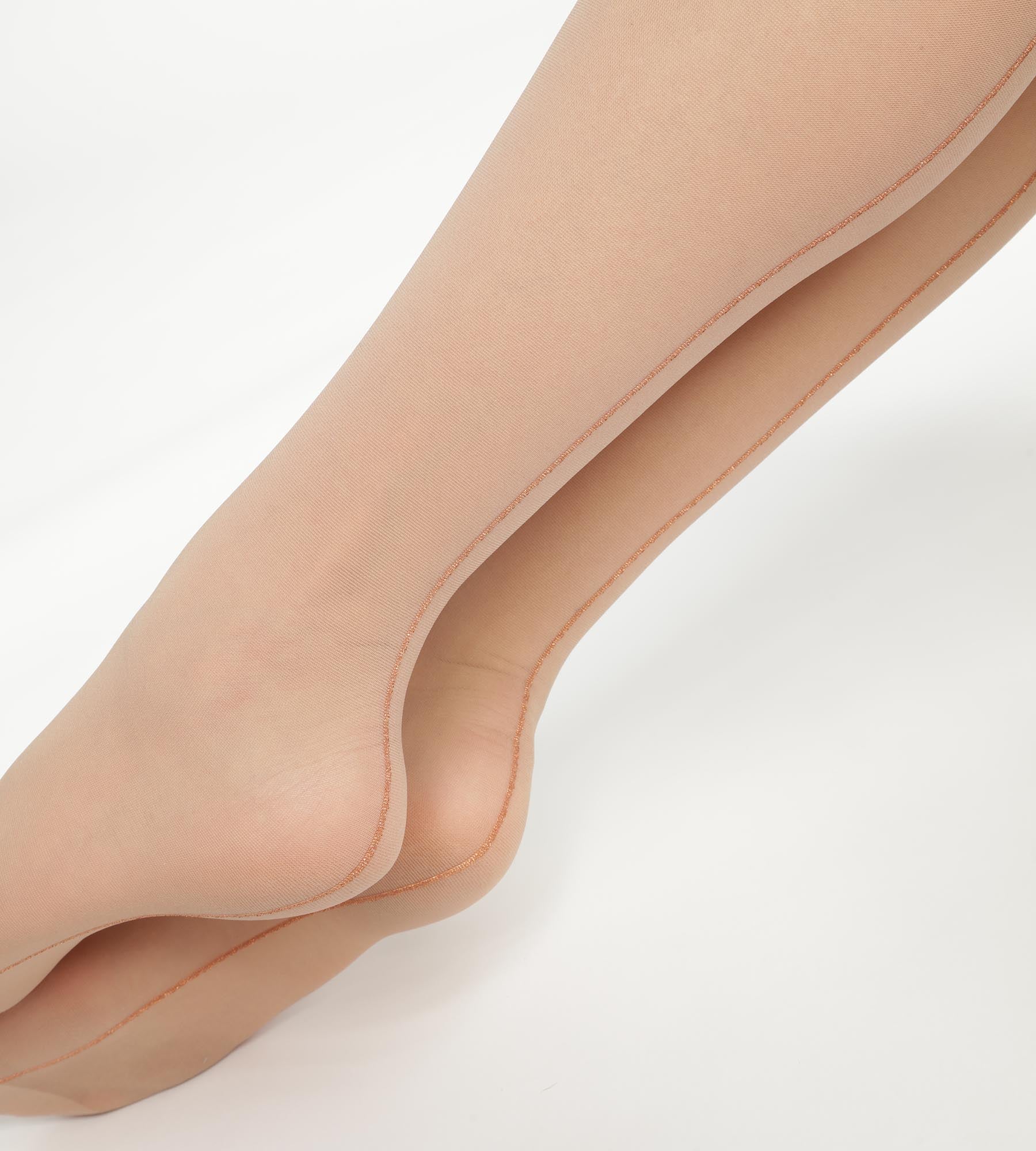 Liefde aan de luxe uitstraling van de Dim Style Beige panty met koperen metallic rand!