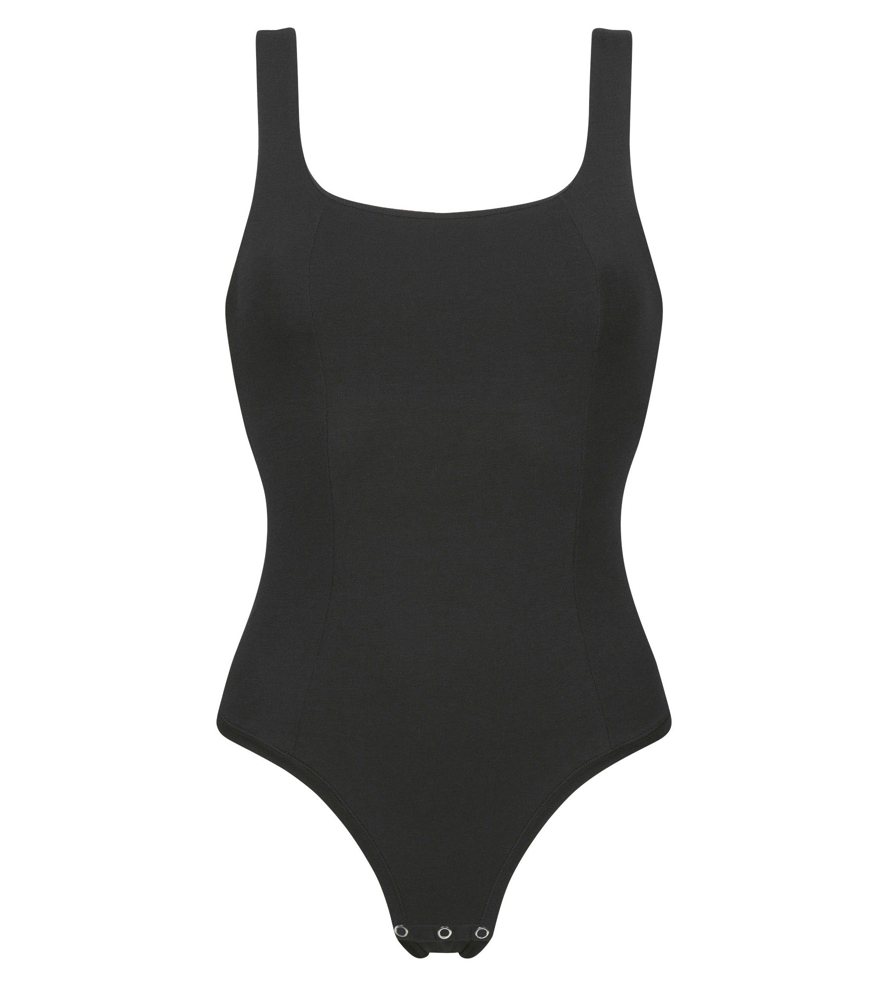 Body femme en coton modal à bretelles et décolleté carré Noir Dim Icons