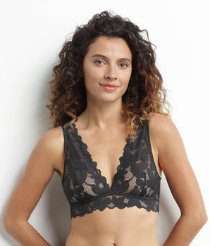 Bralette femme en dentelle à grosses fleurs Gris Granit Dim Lacy