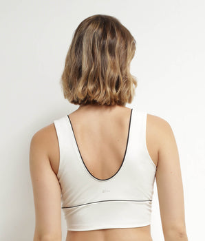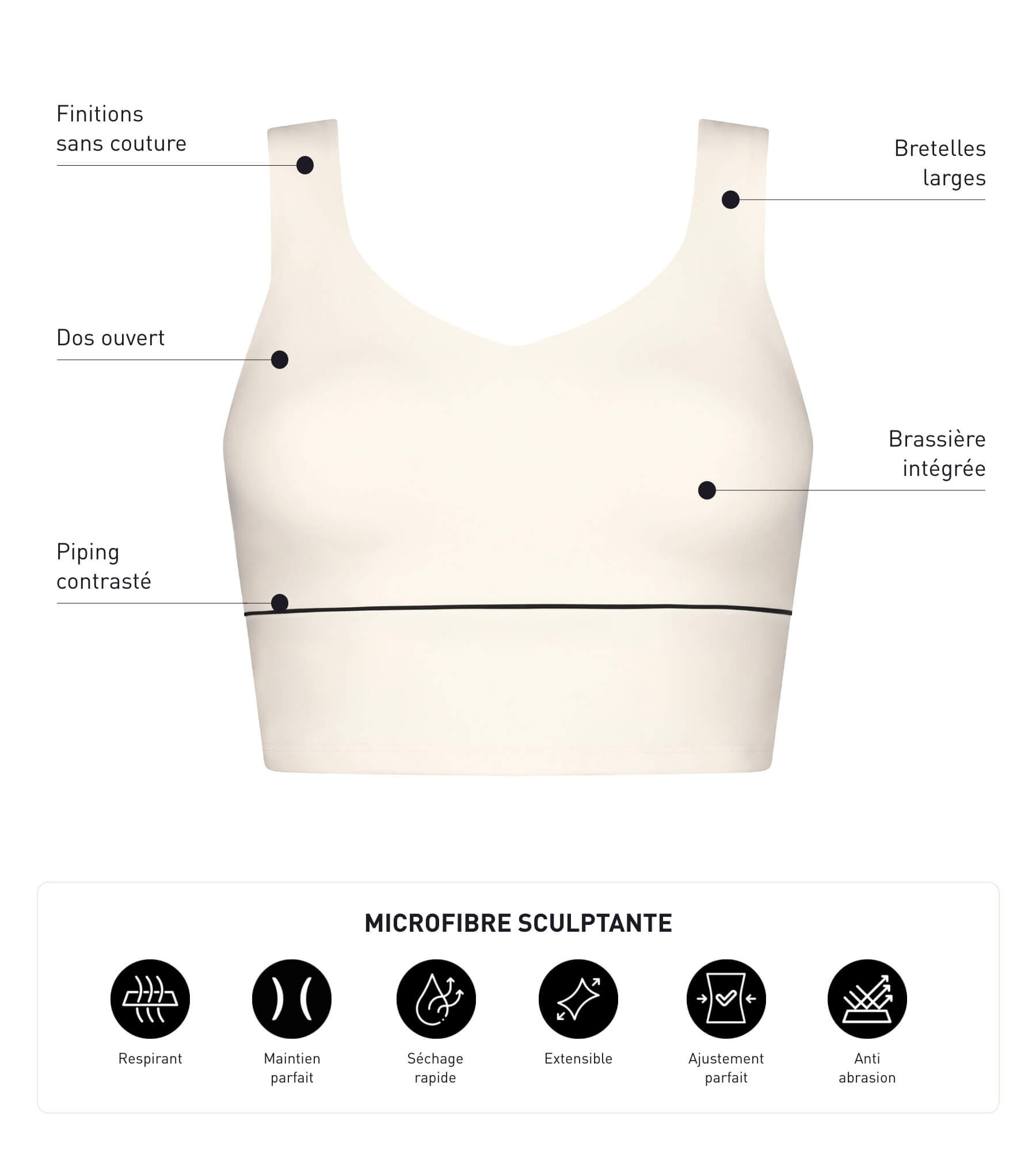 Stylé et performant, misez sur le crop top en microfibre Écru Dim Move avec brassière intégrée !