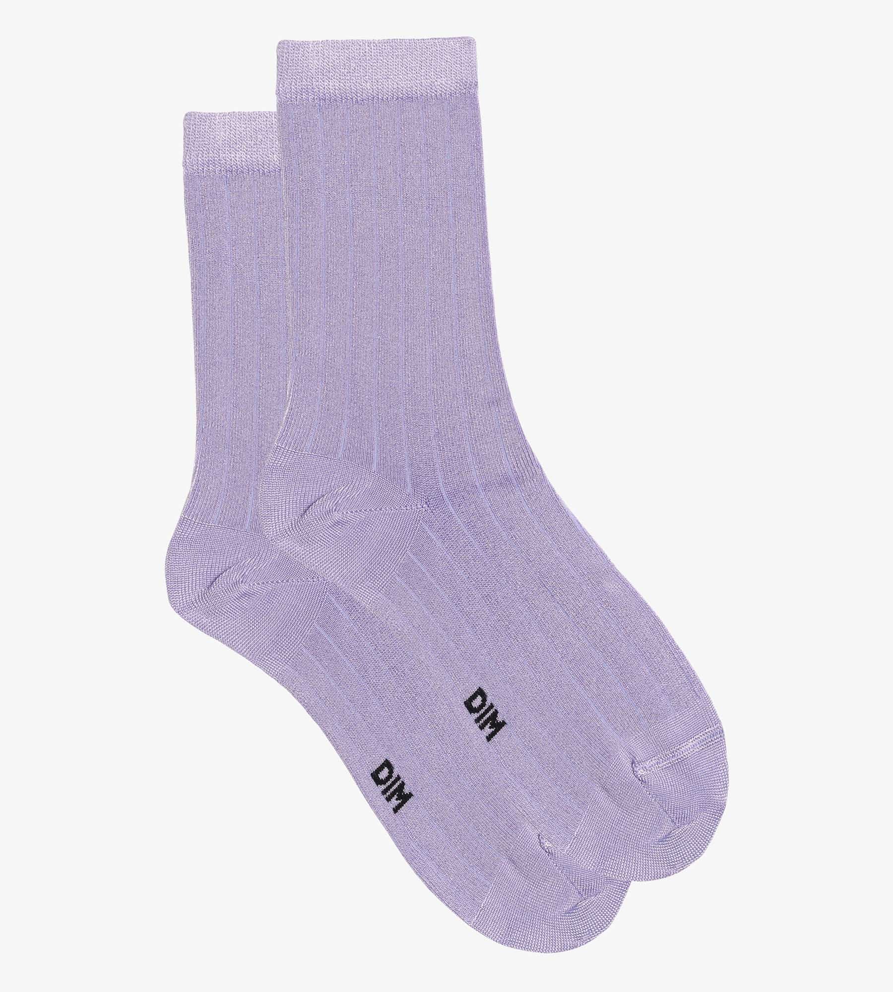 Finalisez vos looks avec élégance grâce aux chaussettes femme Dim Mode à la maille satinée et côtelée Lila très tendance !