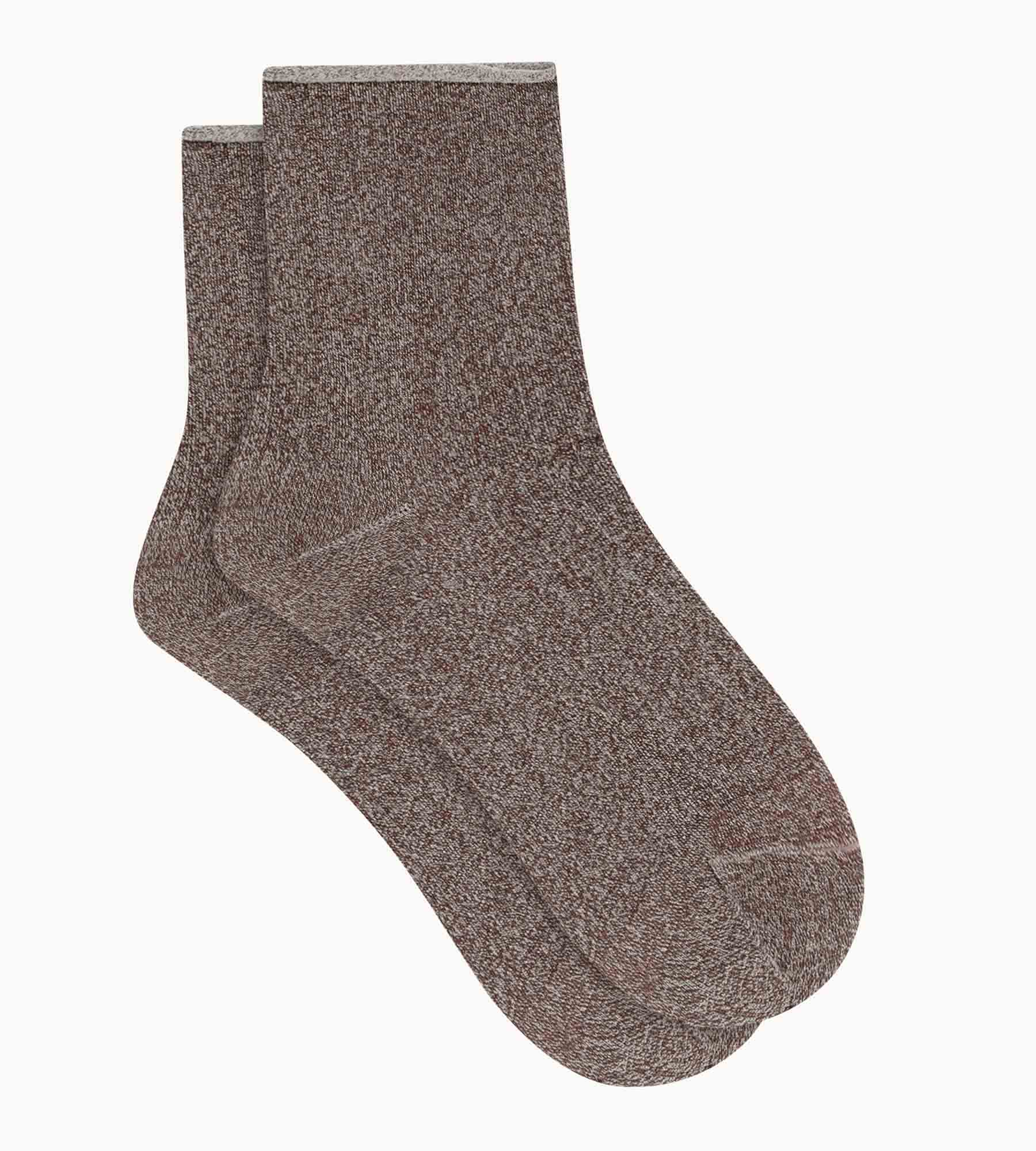Créez un tiroir pointu avec les chaussettes unies femme Dim Mode en lurex, en alternant un Marron naturel, un Noir essentiel et des nuances plus mode.