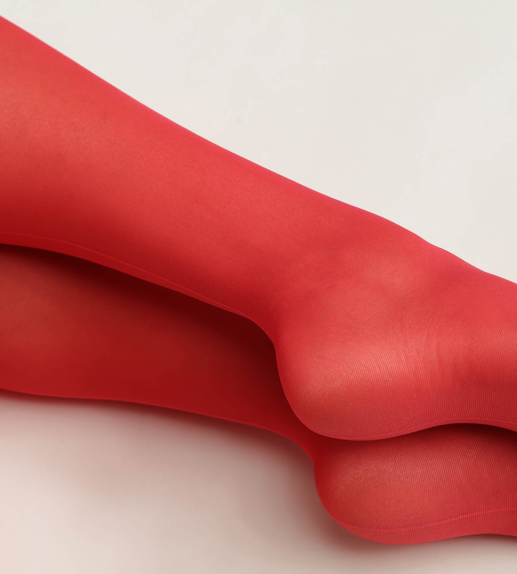 Ajoutez une une touche fashion à vos tenues avec le collant Dim Style en voile rouge transparent et liseré contrasté !