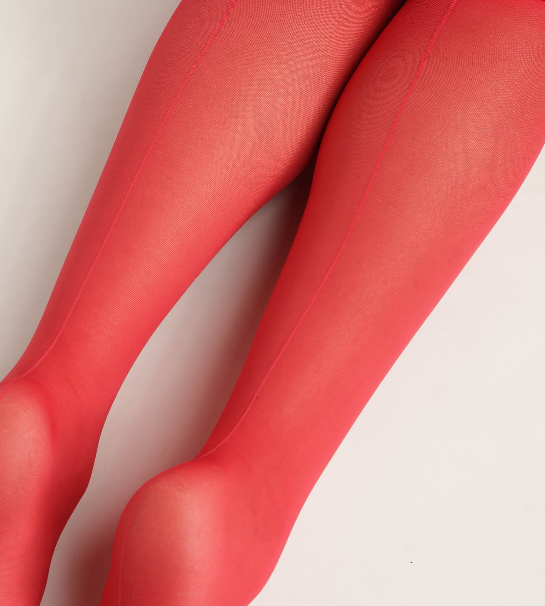 Collant femme Rouge transparent avec trait contrasté Dim Style
