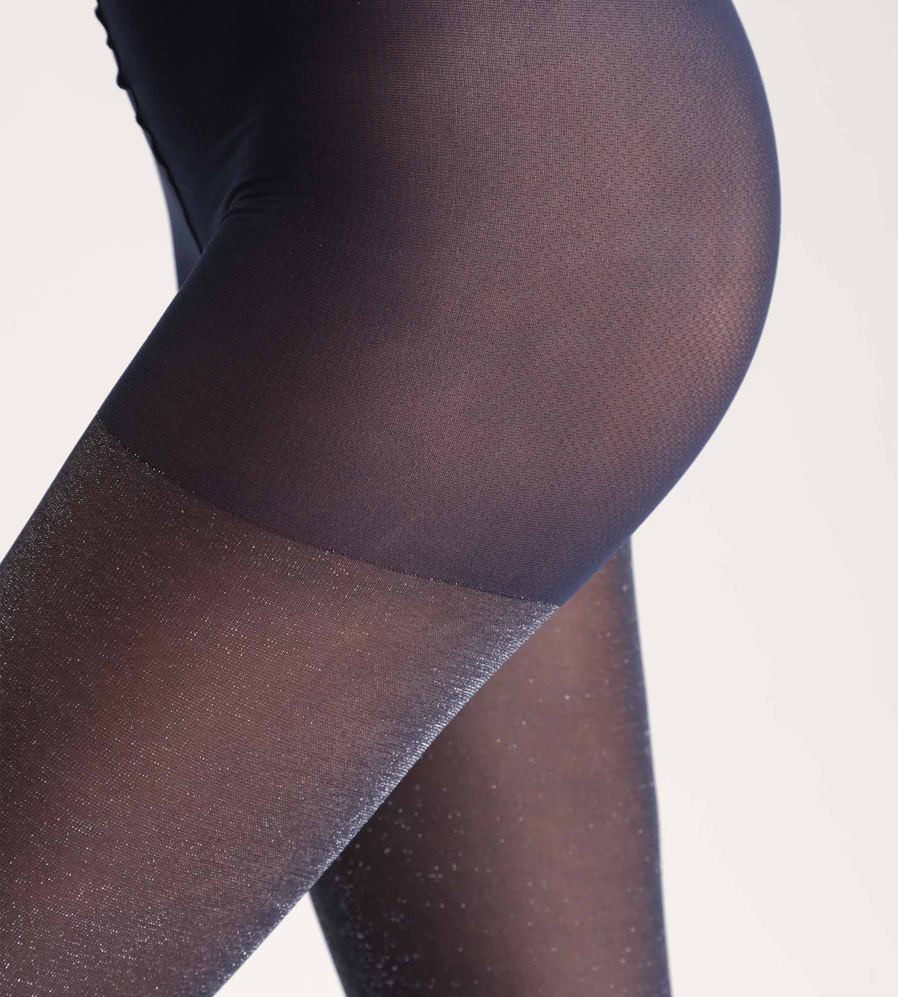 Éclairez vos tenues avec élégance grâce au collant fantaisie femme DIM Style en voile Lurex bleu marine.