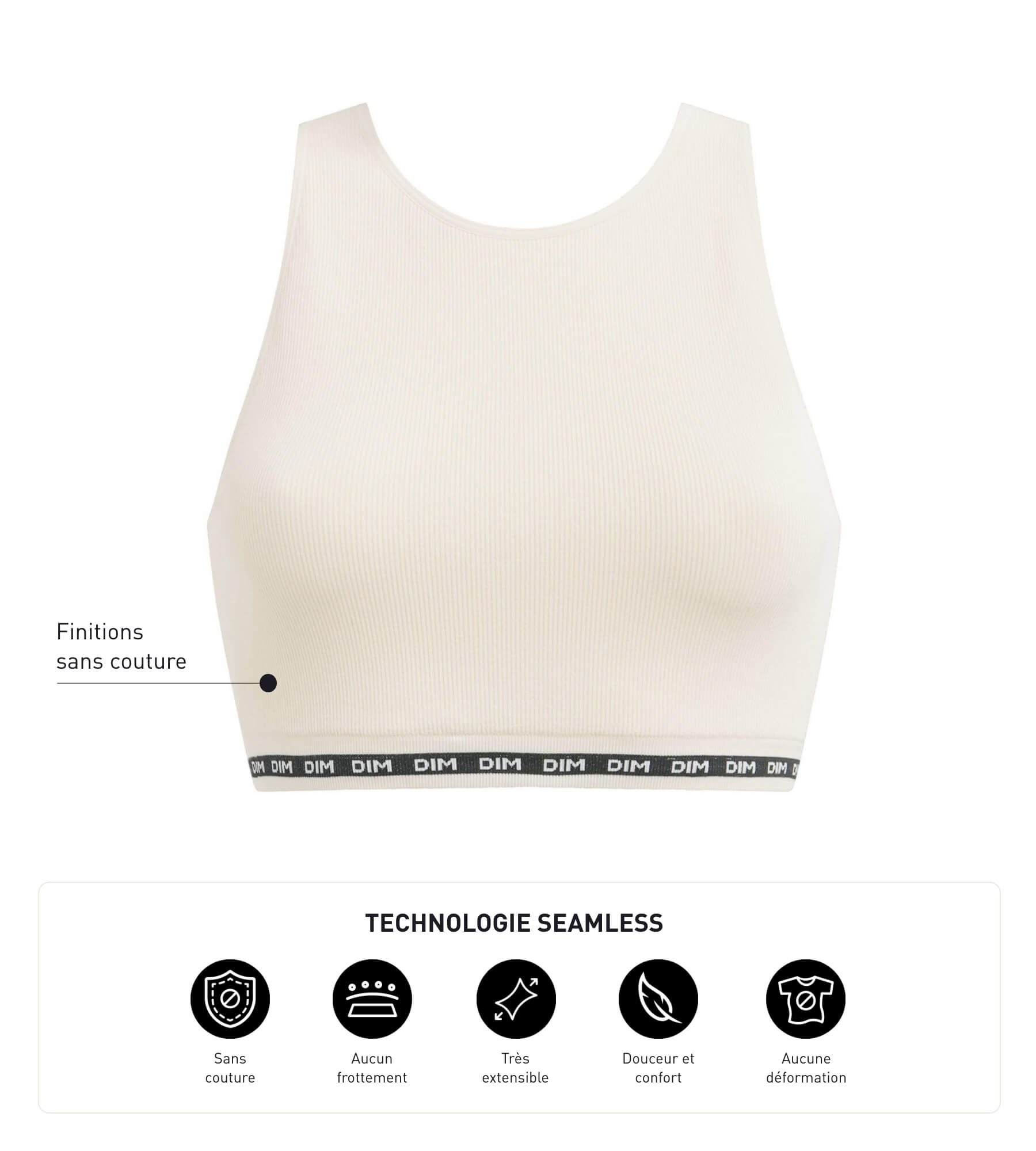 Abordez la journée avec confort grâce à la brassière Dim Icons Seamless, à la coupe crop top sans couture, qui préserve votre liberté de mouvement ! On adore sa maille côtelée qui vous enveloppe avec aisance, et sa structure souple : notre soutien-gorge brassière dim est absolument cosy ! Grâce à sa coupe comme un top, notre pièce de lingerie se porte seule ou en complément d’un soutien-gorge invisible pour plus de maintien.