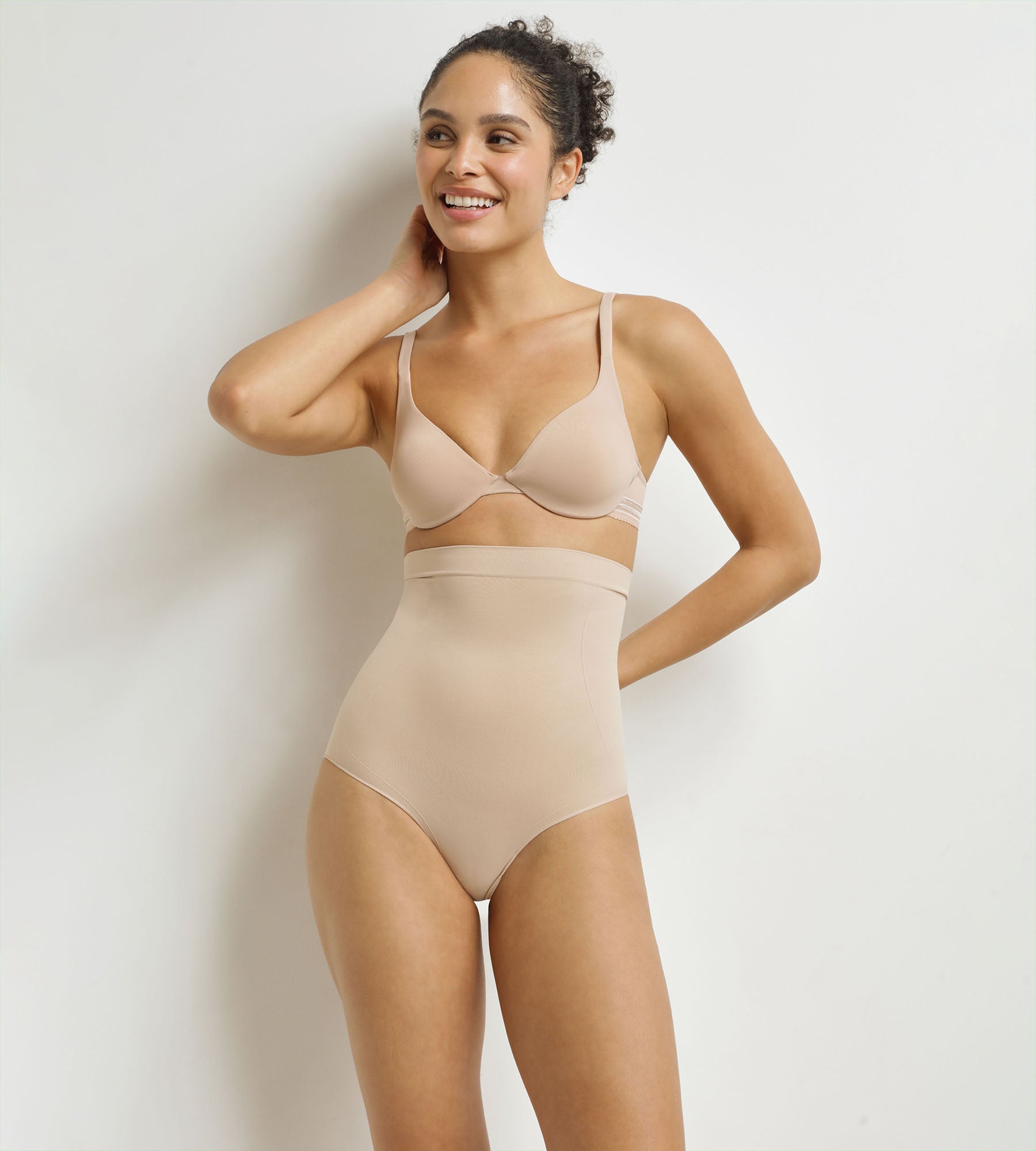 Sublimez votre taille avec confort grâce à la culotte taille haute nude Dim Silhouette en matière seconde peau.