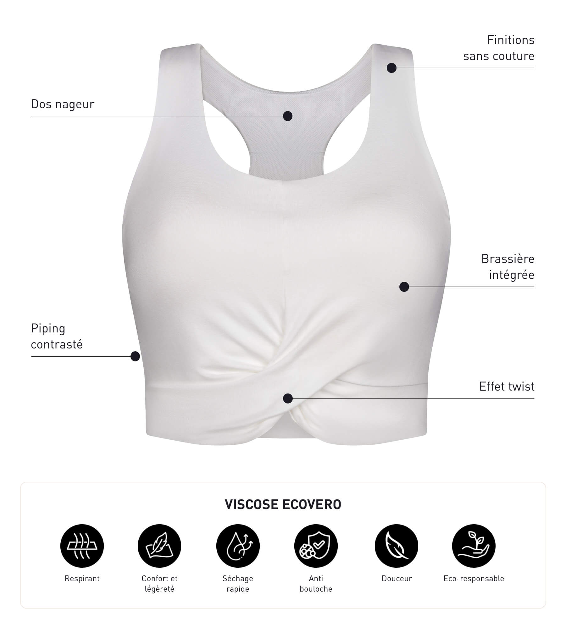 Alliez confort, maintien et style avec le débardeur de sport femme Écru en viscose avec brassière intégrée Dim Move !