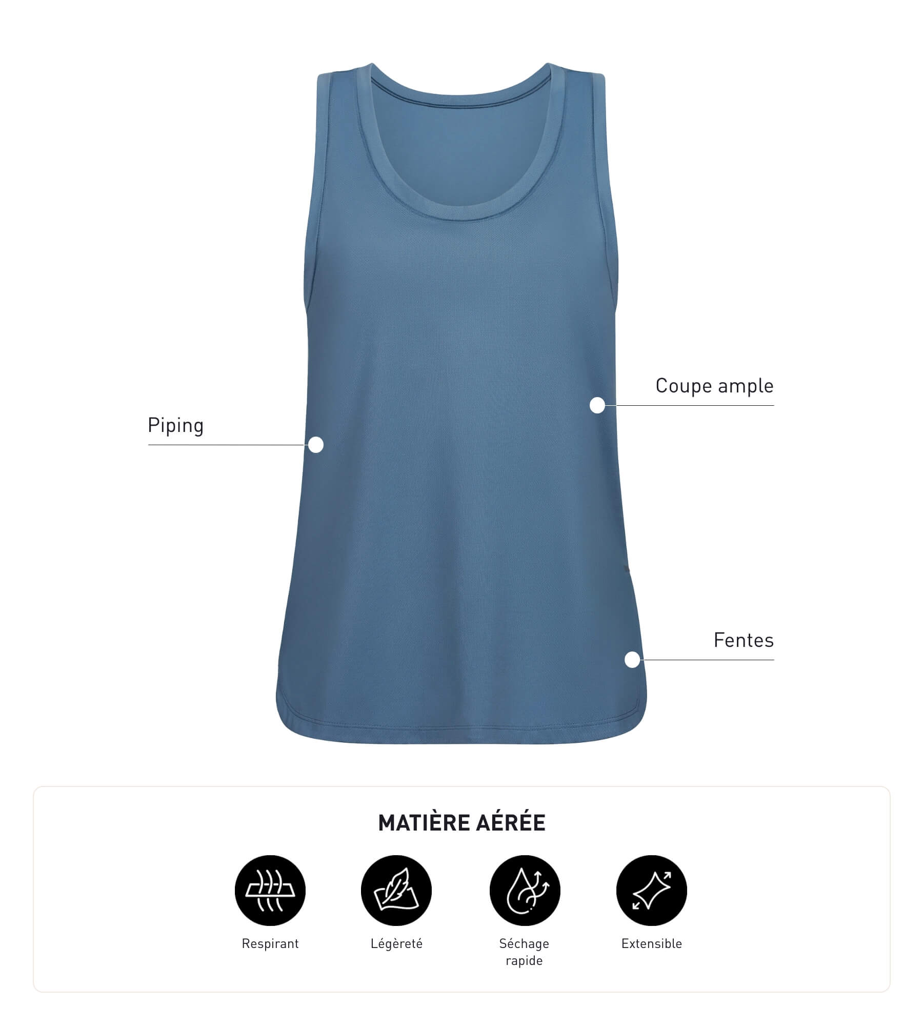 Découvrez la légèreté absolue avec le débardeur de sport long Dim Move pour femme, en viscose Bleu Jean !