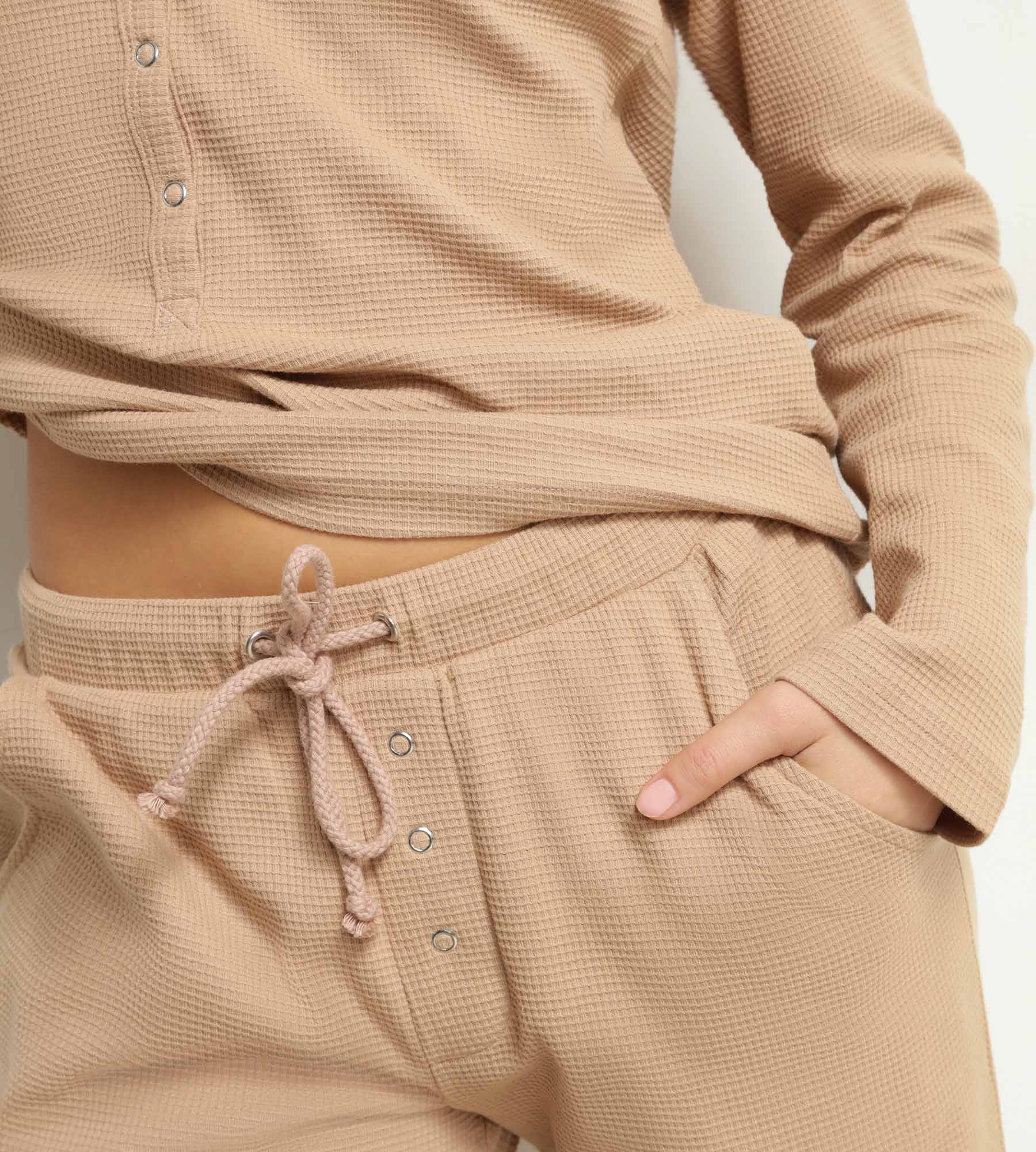 Conçu pour les adeptes du homewear chic, ce pyjama Dim femme de la collection Cosy Time allie douceur et modernité. Le jersey texturé du haut apporte du relief, le pantalon waffle crée un contraste subtil de matières. Le Marron Taupe offre une base neutre et élégante, facile à porter au quotidien. La coupe jogger avec chevilles resserrées structure la silhouette tout en préservant une liberté totale de mouvement. Un ensemble parfait pour buller avec style les week-ends ou après une longue journée !